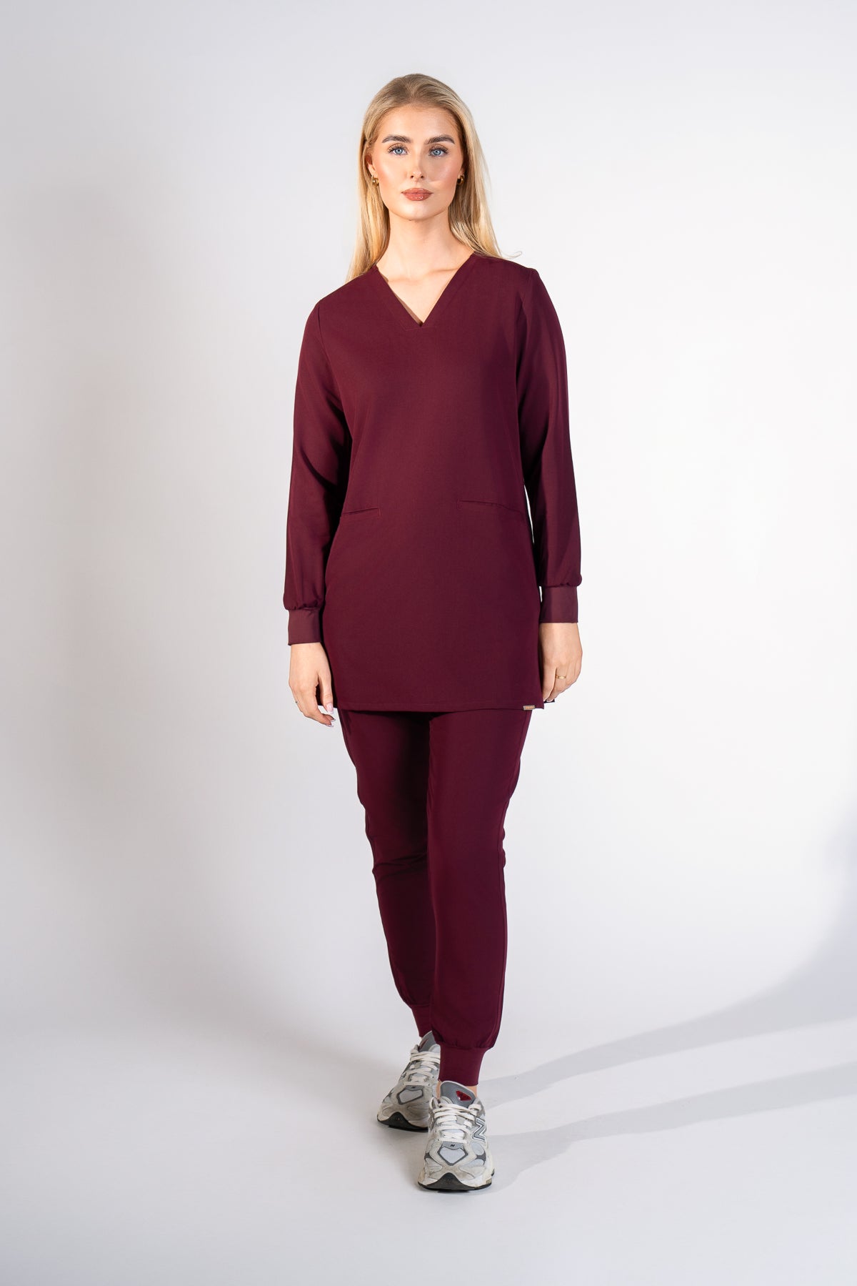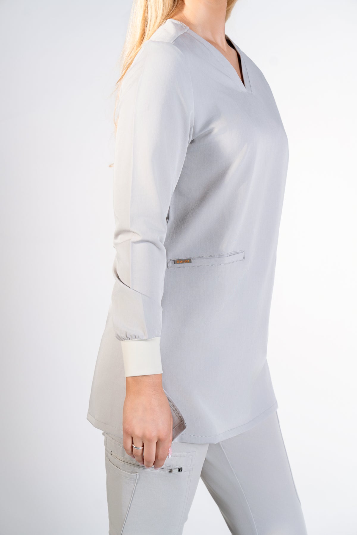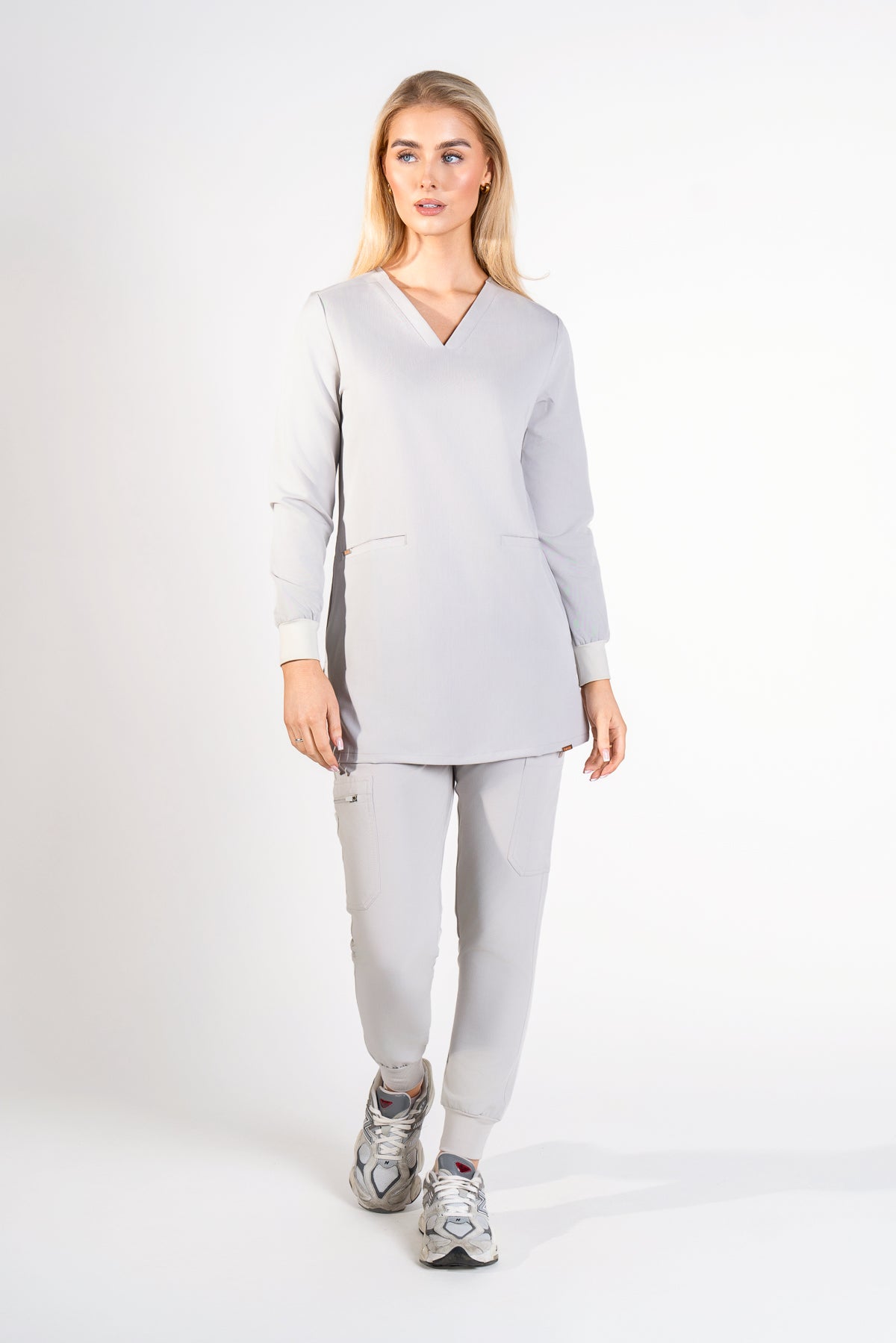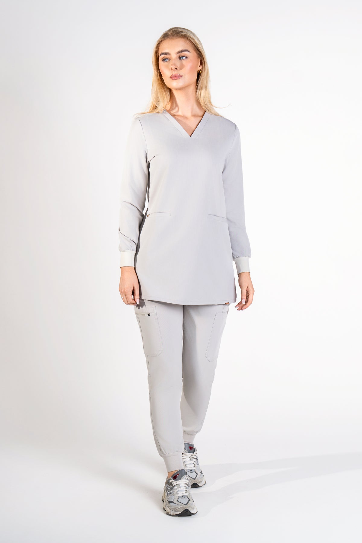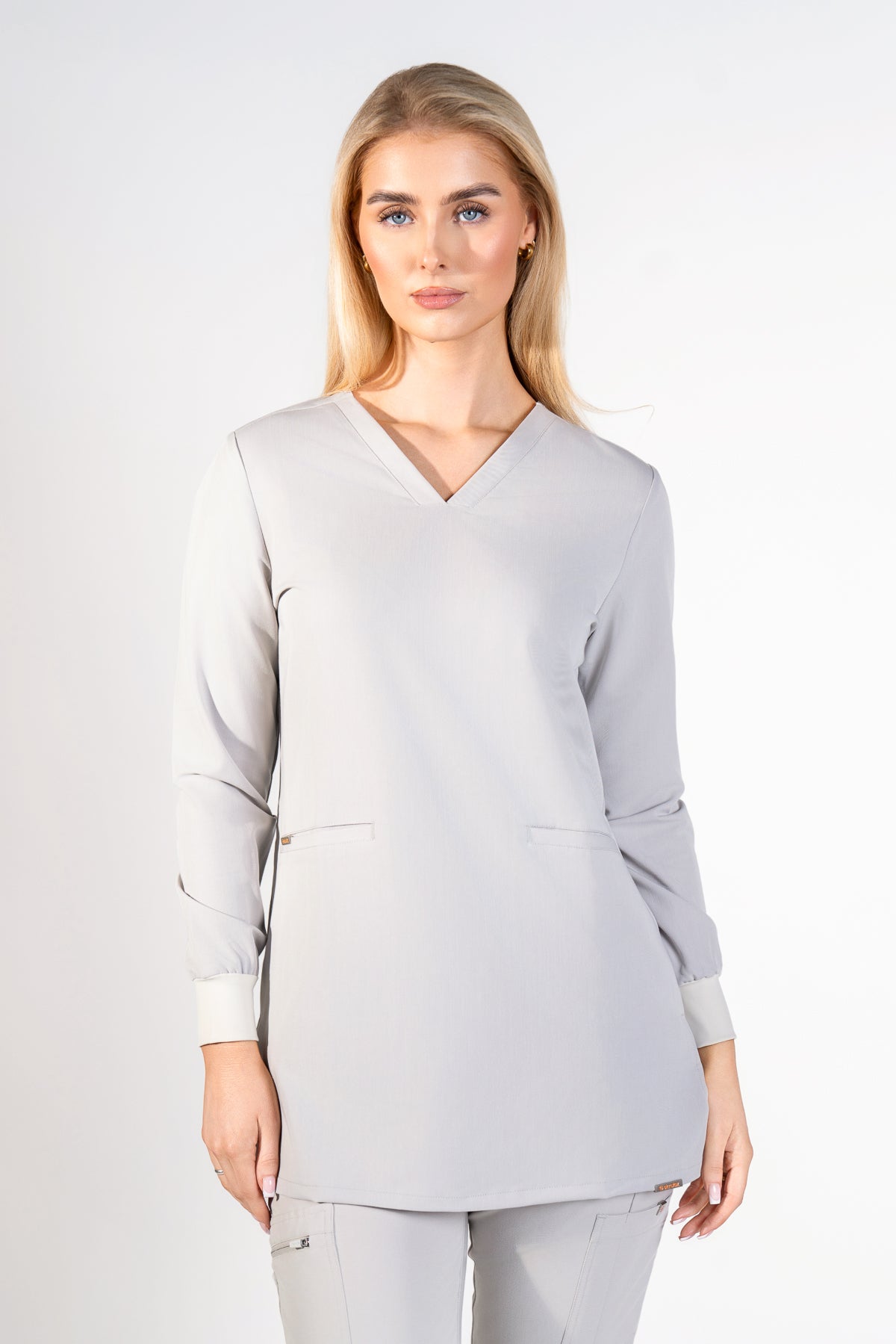 Absolutely adore this scrub top! The V-neck is so flattering, and the long sleeves provide great coverage during chilly shifts. Got it in navy and black, and both colours are vibrant and professional-looking.