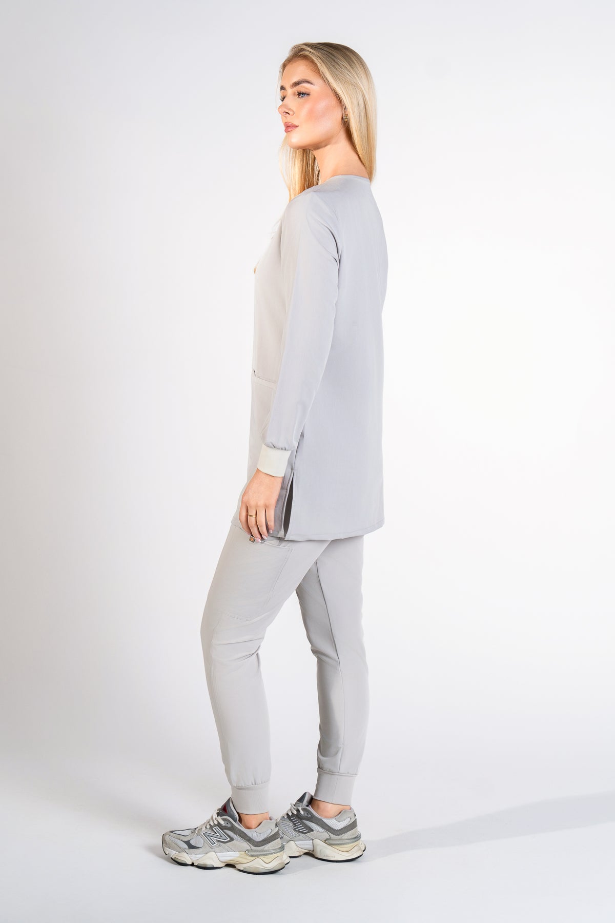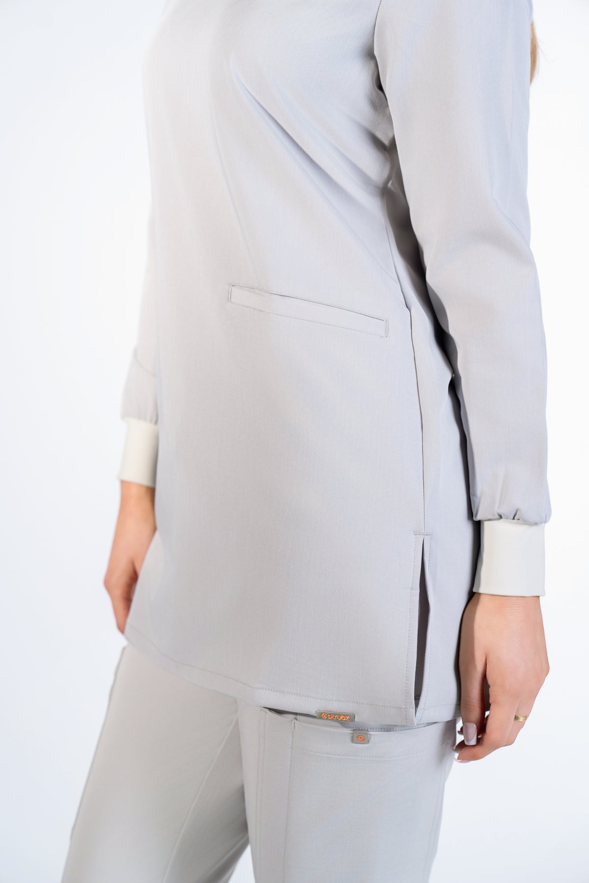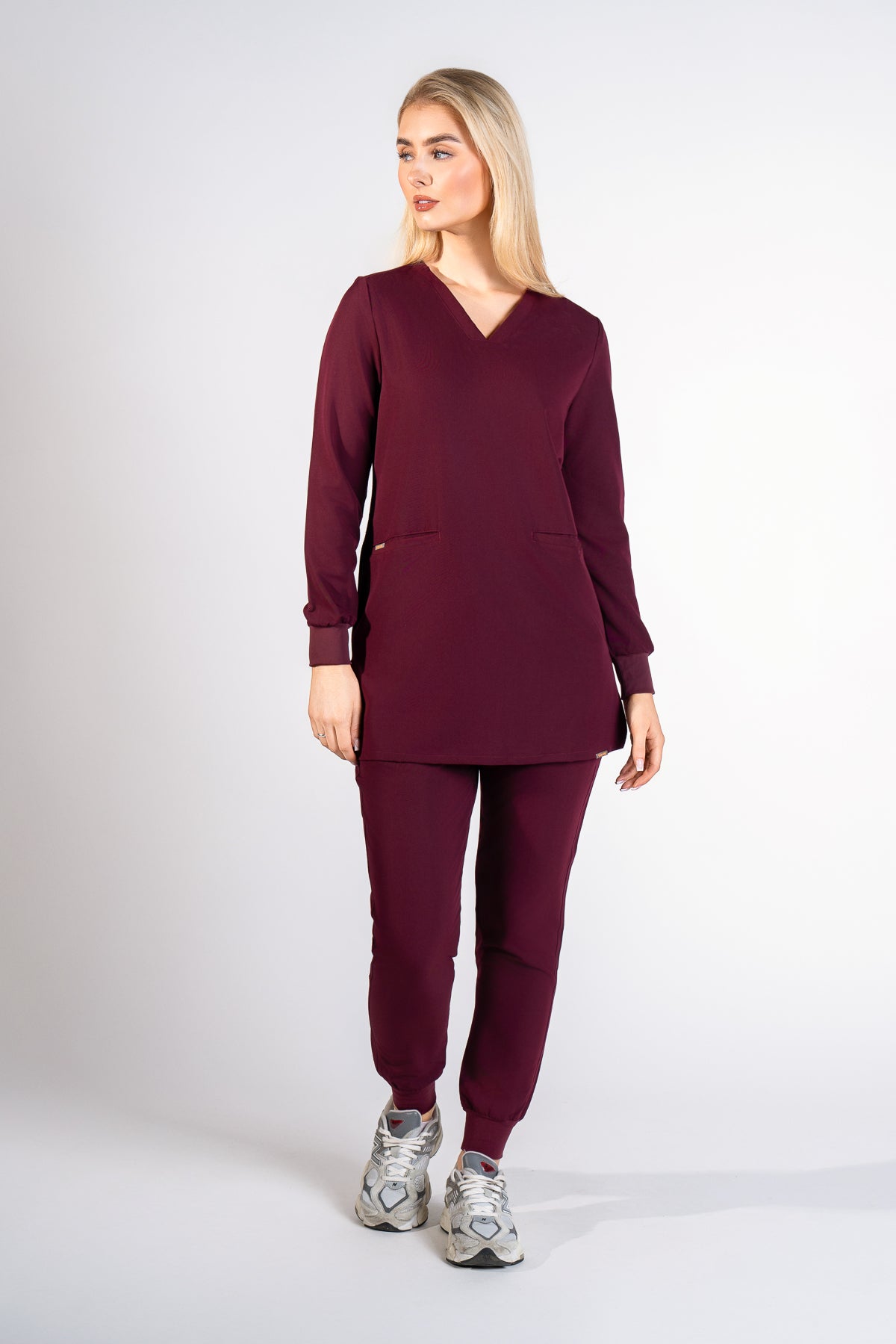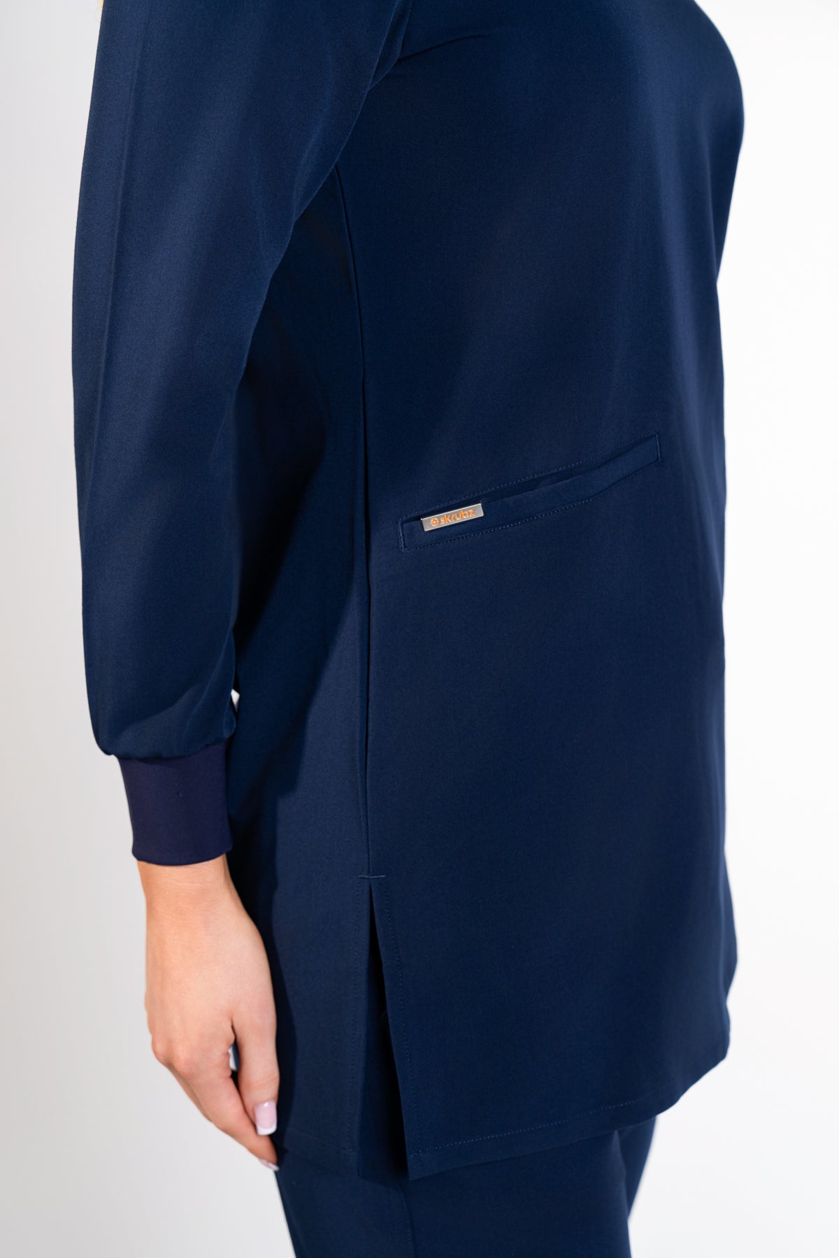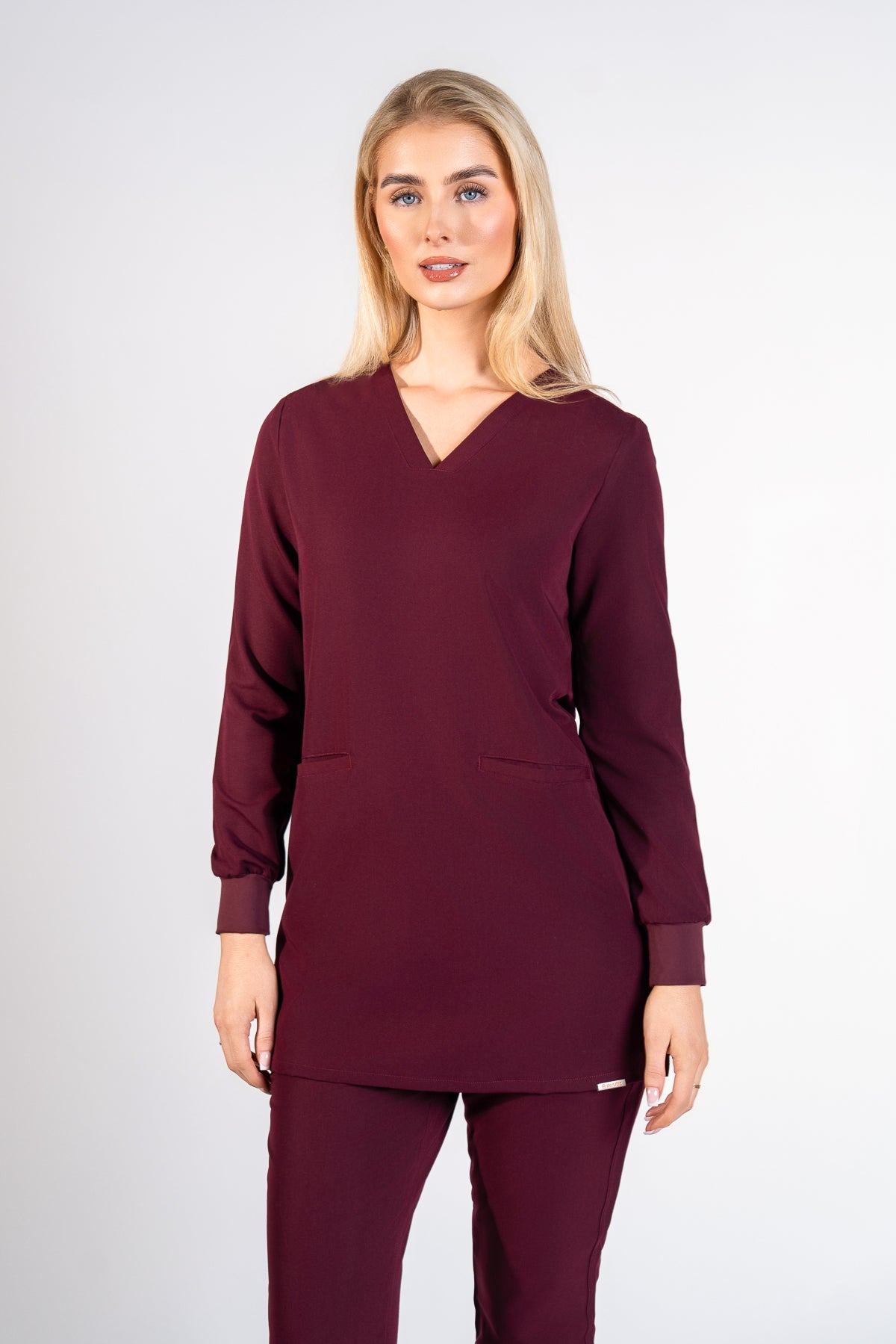 Absolutely adore this scrub top! The V-neck is so flattering, and the long sleeves provide great coverage during chilly shifts. Got it in navy and black, and both colours are vibrant and professional-looking.