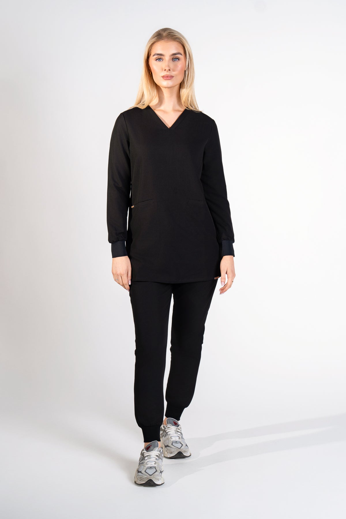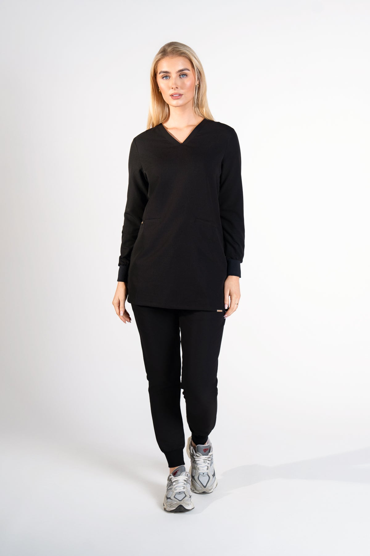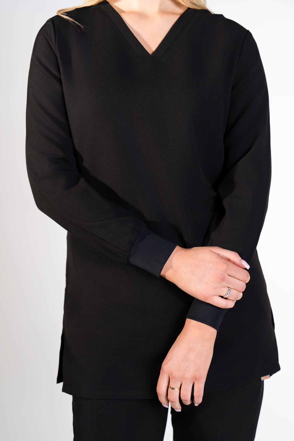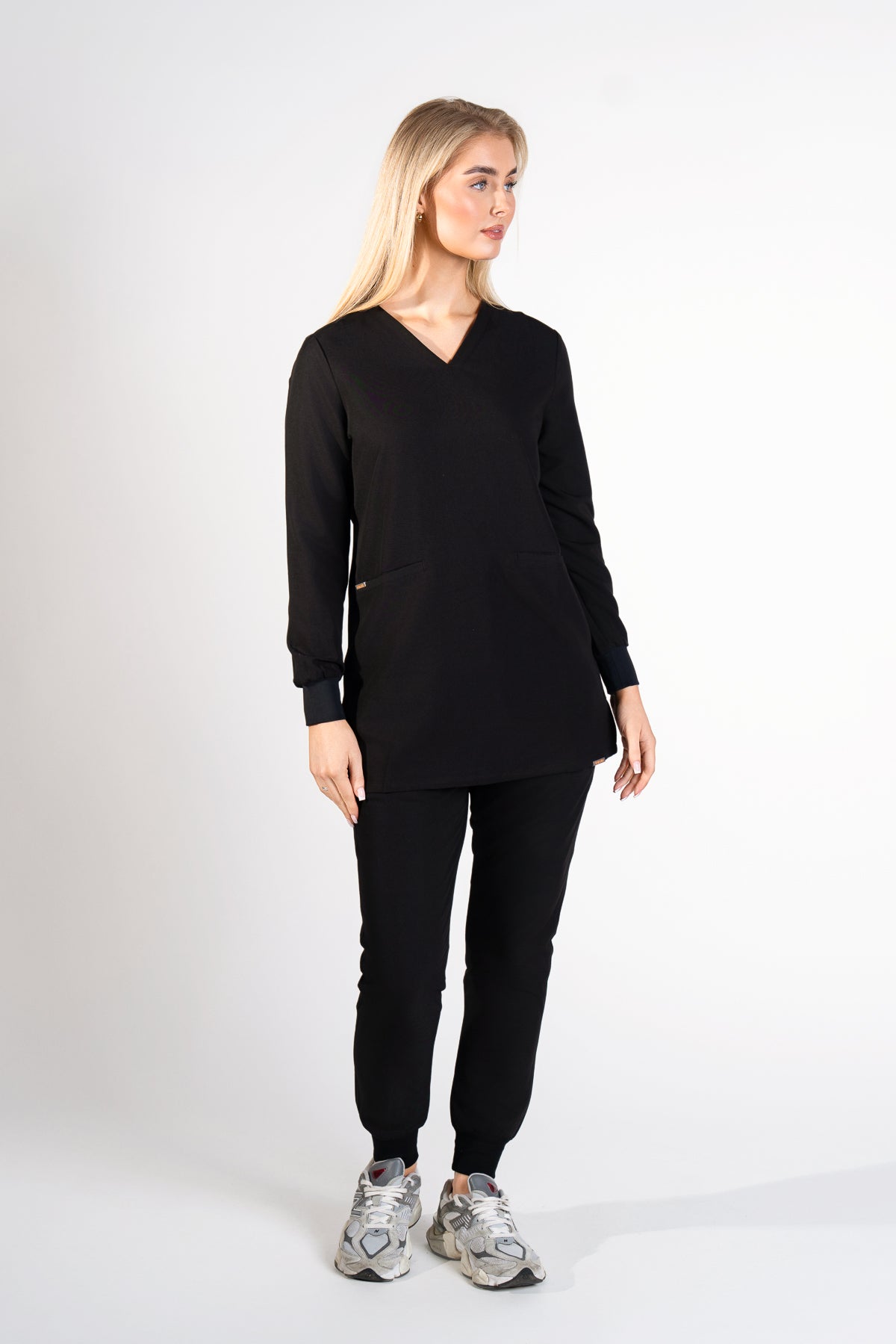 In love with this scrub top! The V-neck adds a touch of femininity, and the long sleeves offer warmth without feeling restrictive. The black colour is so attractive. Highly recommend this top to my fellow nurses!