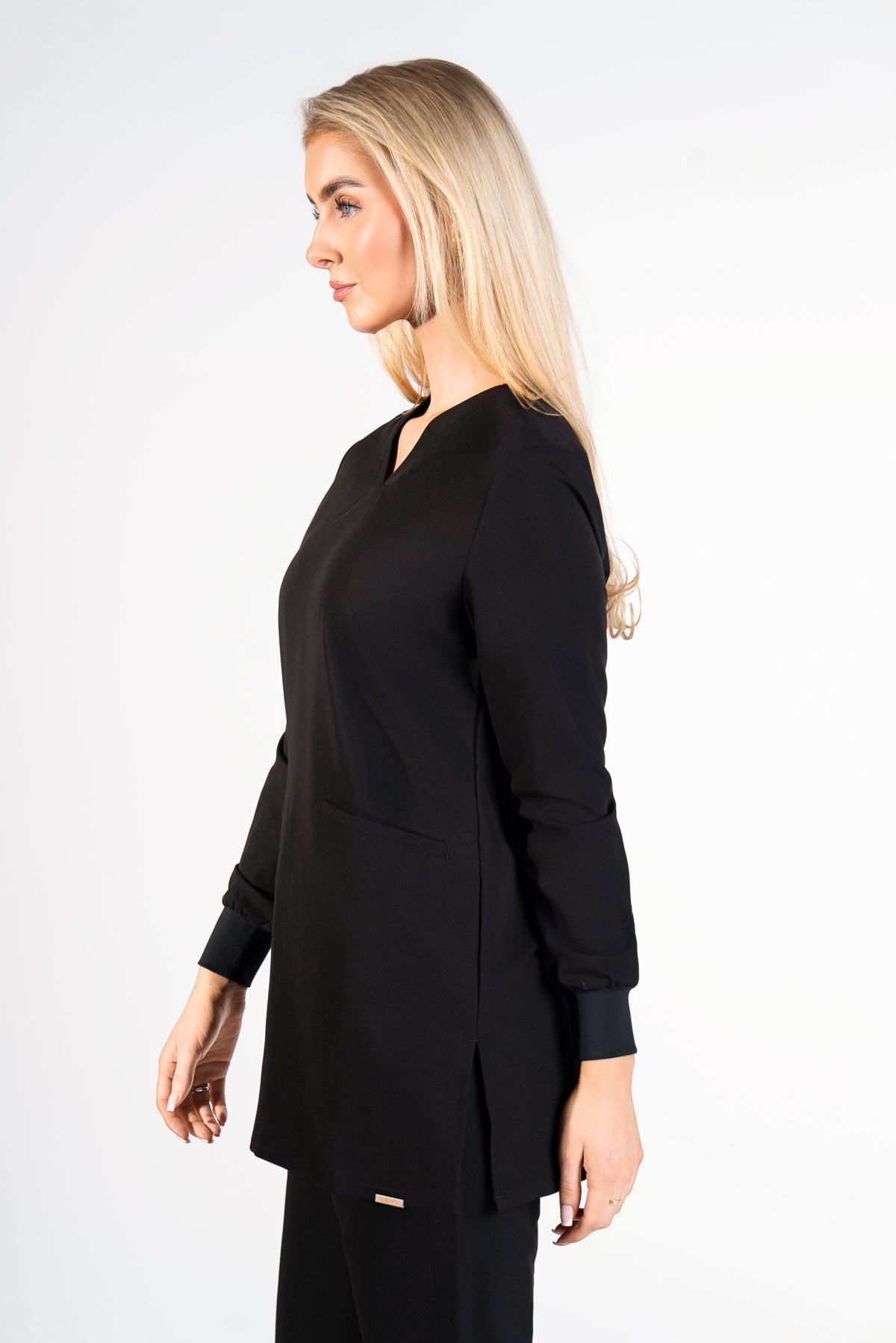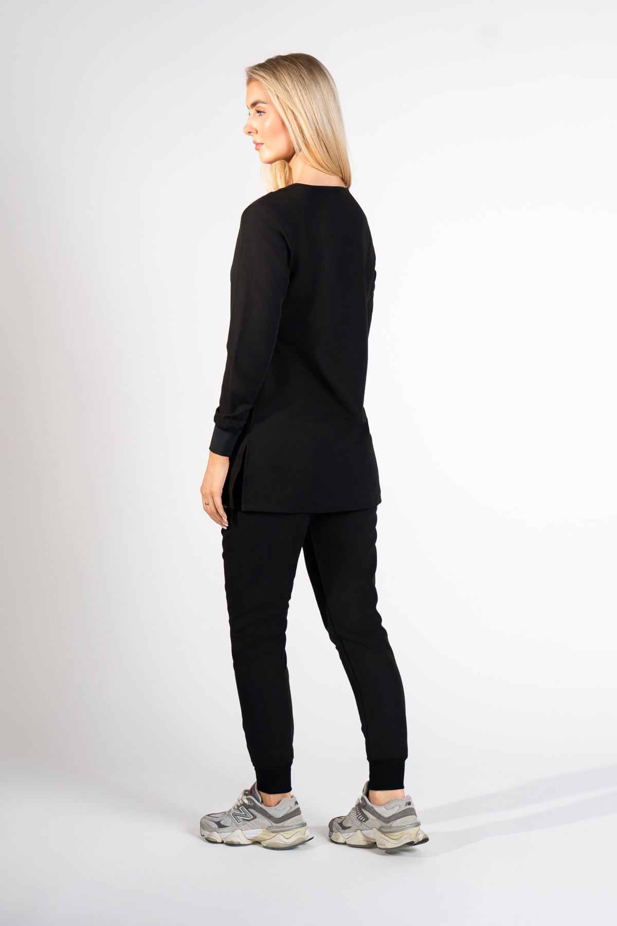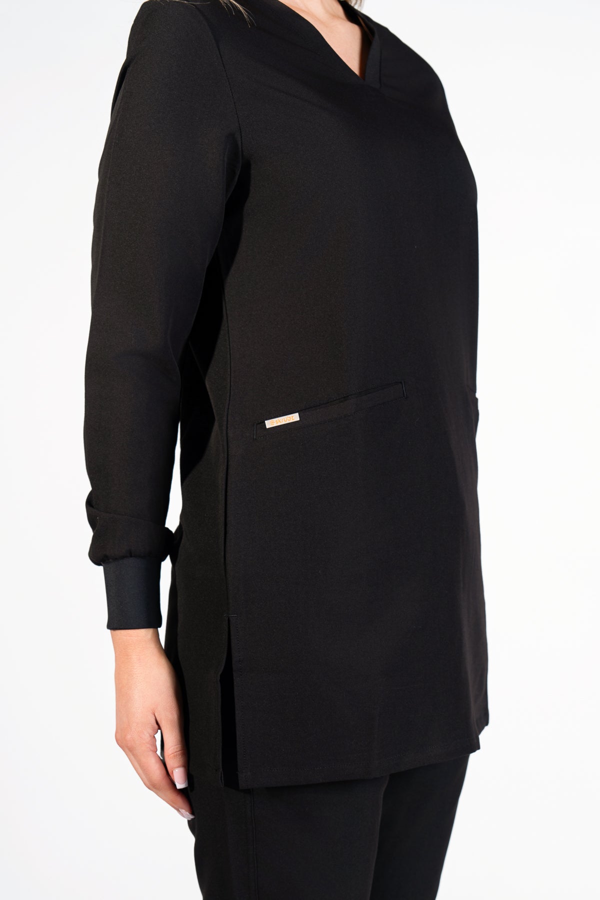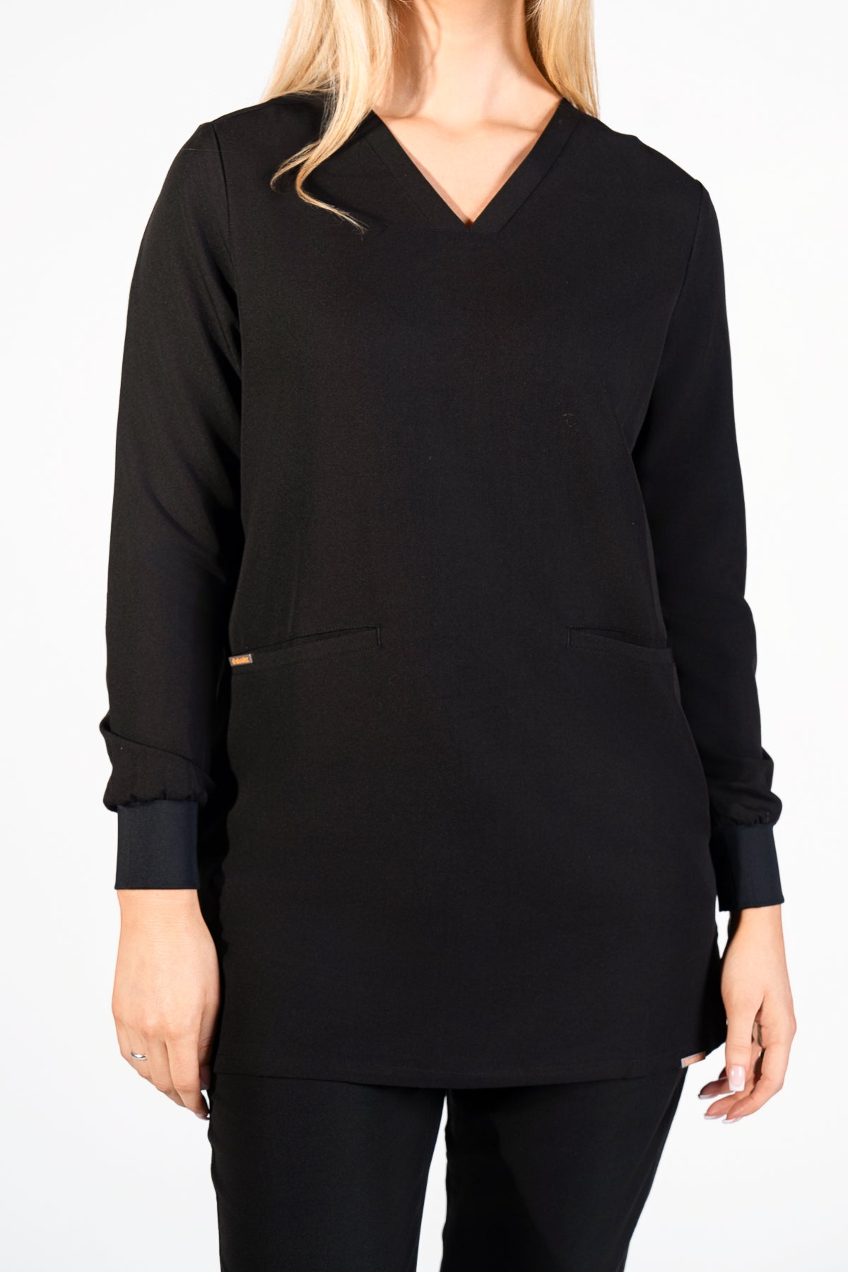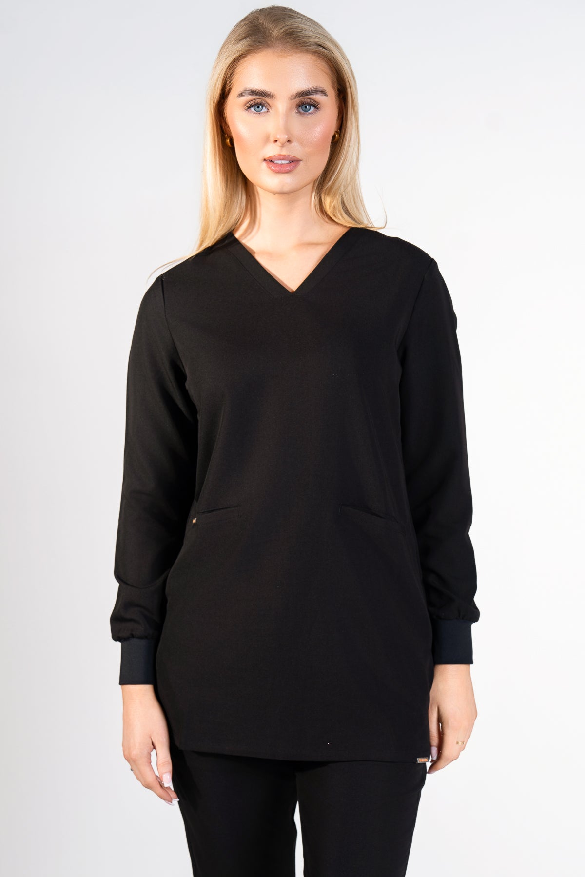 In love with this scrub top! The V-neck adds a touch of femininity, and the long sleeves offer warmth without feeling restrictive. The black colour is so attractive. Highly recommend this top to my fellow nurses!