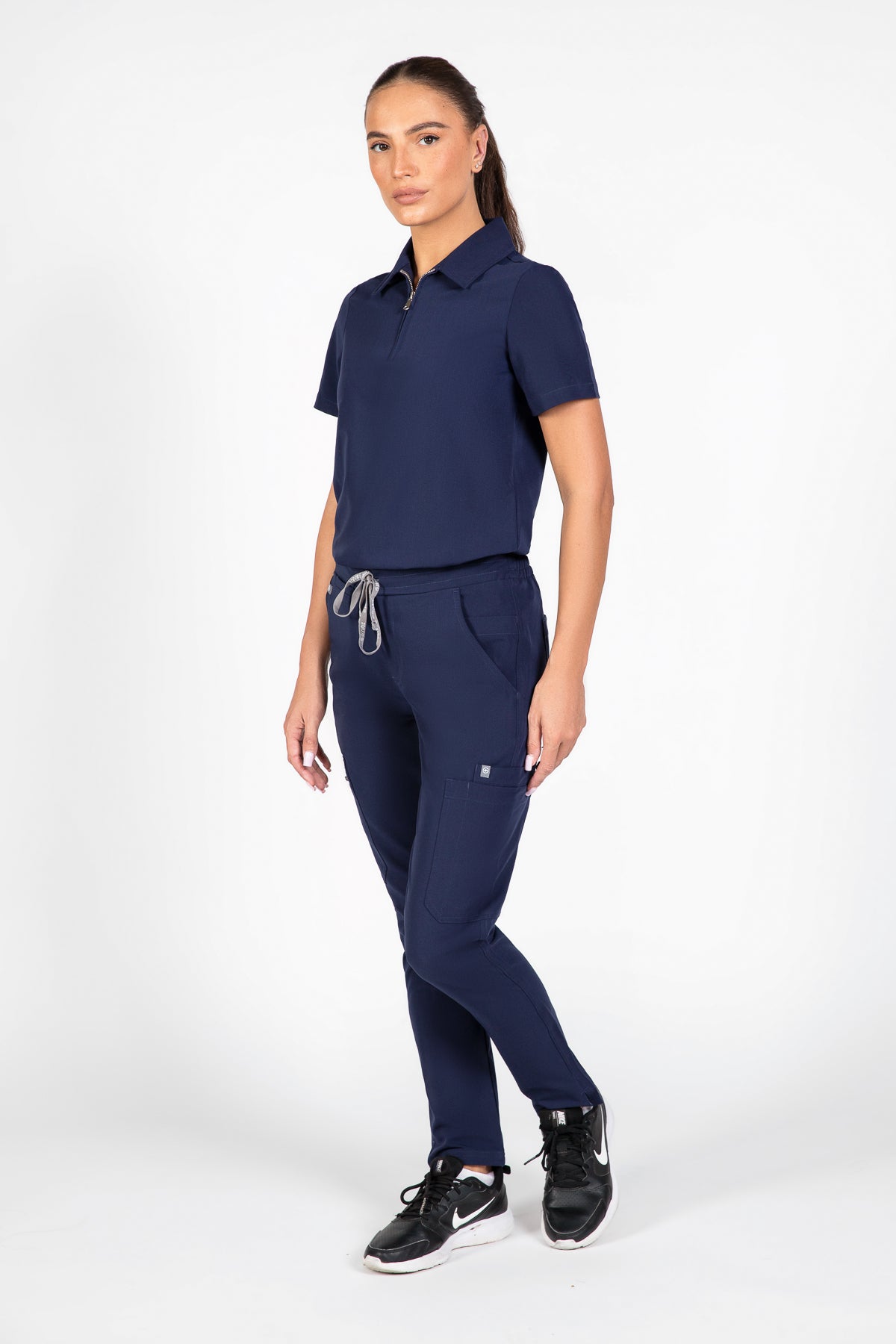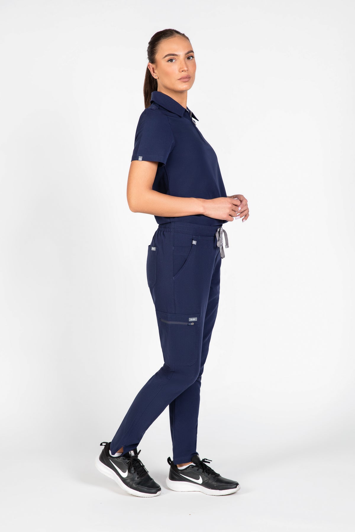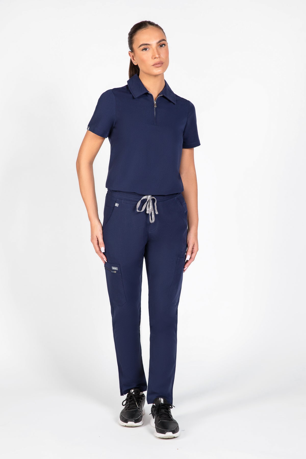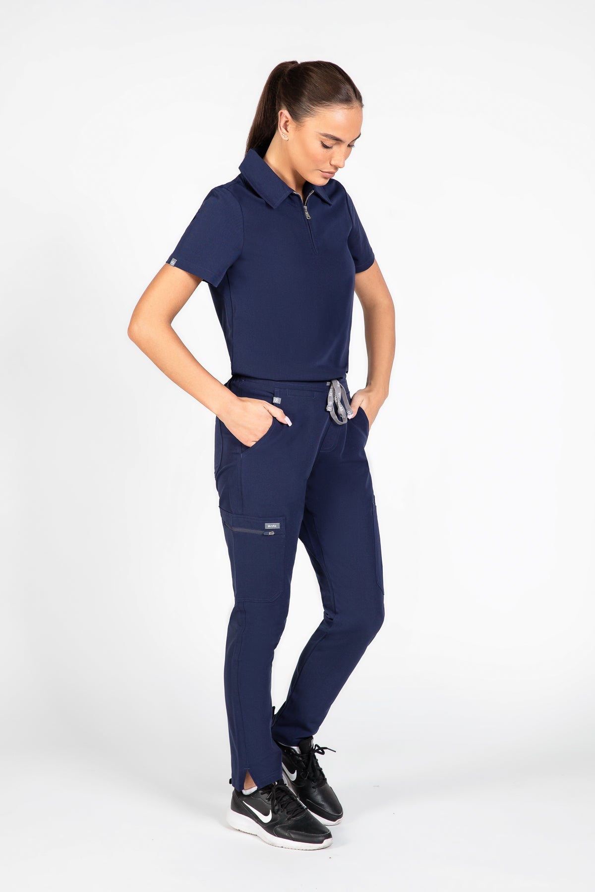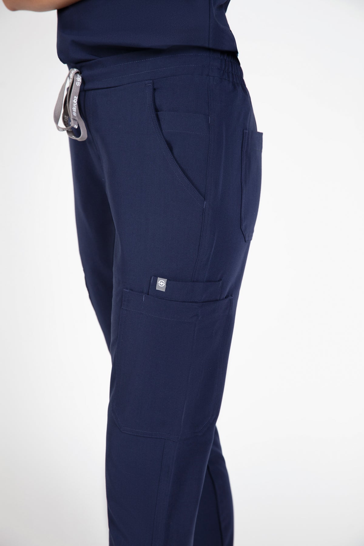 The navy Cargo Scrub pants are incredibly functional. The multiple pockets helps to carry my essentials during my busy shifts.