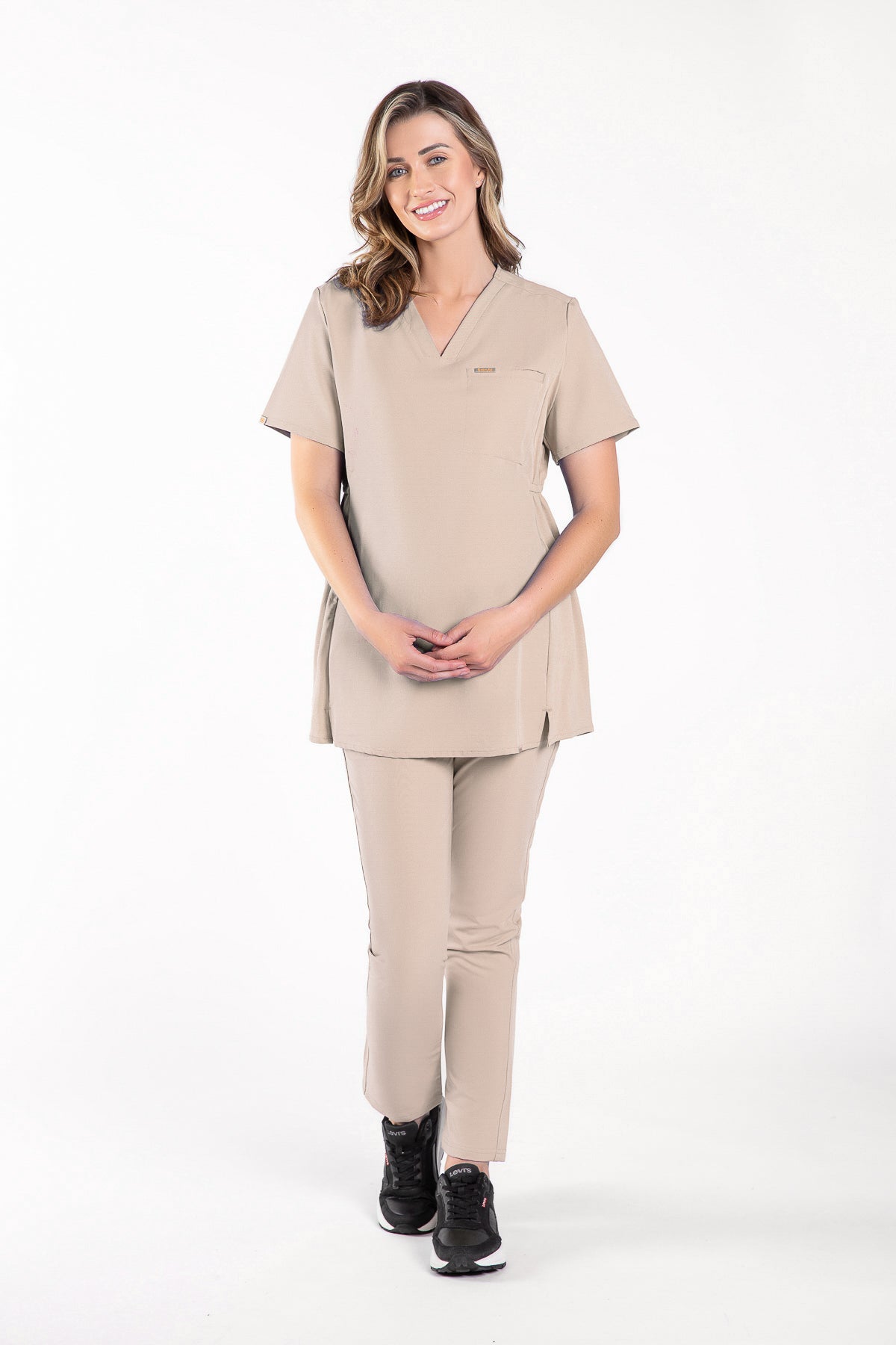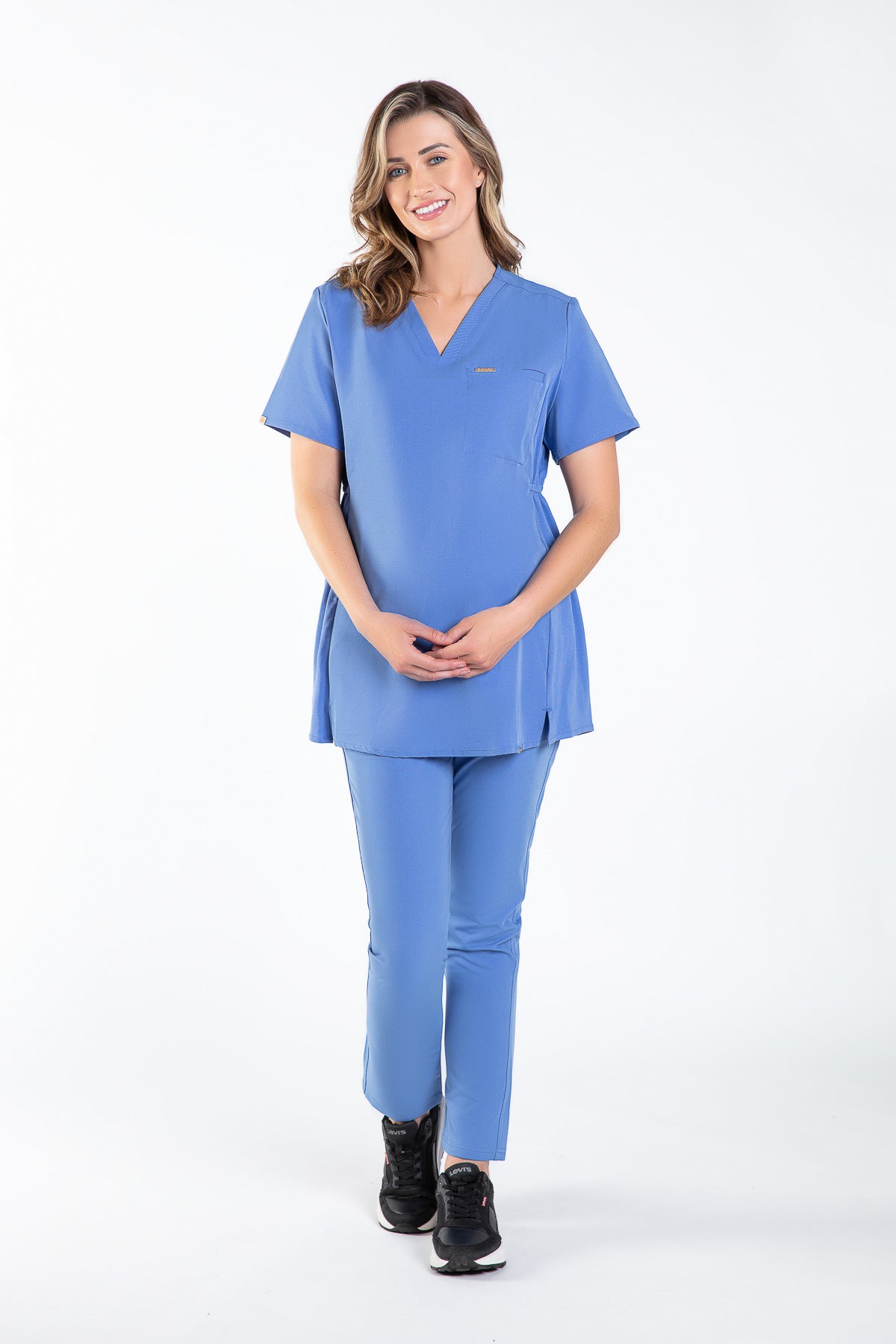 Crafted with care, the Halo V-neck Maternity Scrub features strategically placed pockets, offering convenient access to essentials while accommodating the changing needs of pregnancy. Additionally, a discreetly positioned pocket ensures easy access to small items, enhancing efficiency without compromising on professionalism.