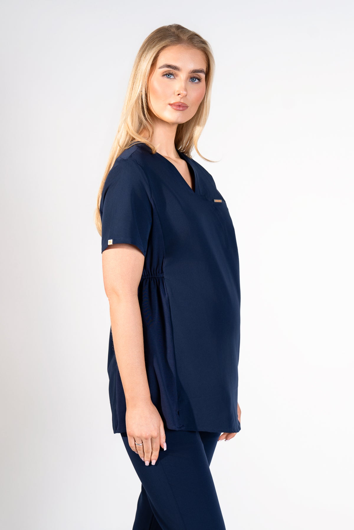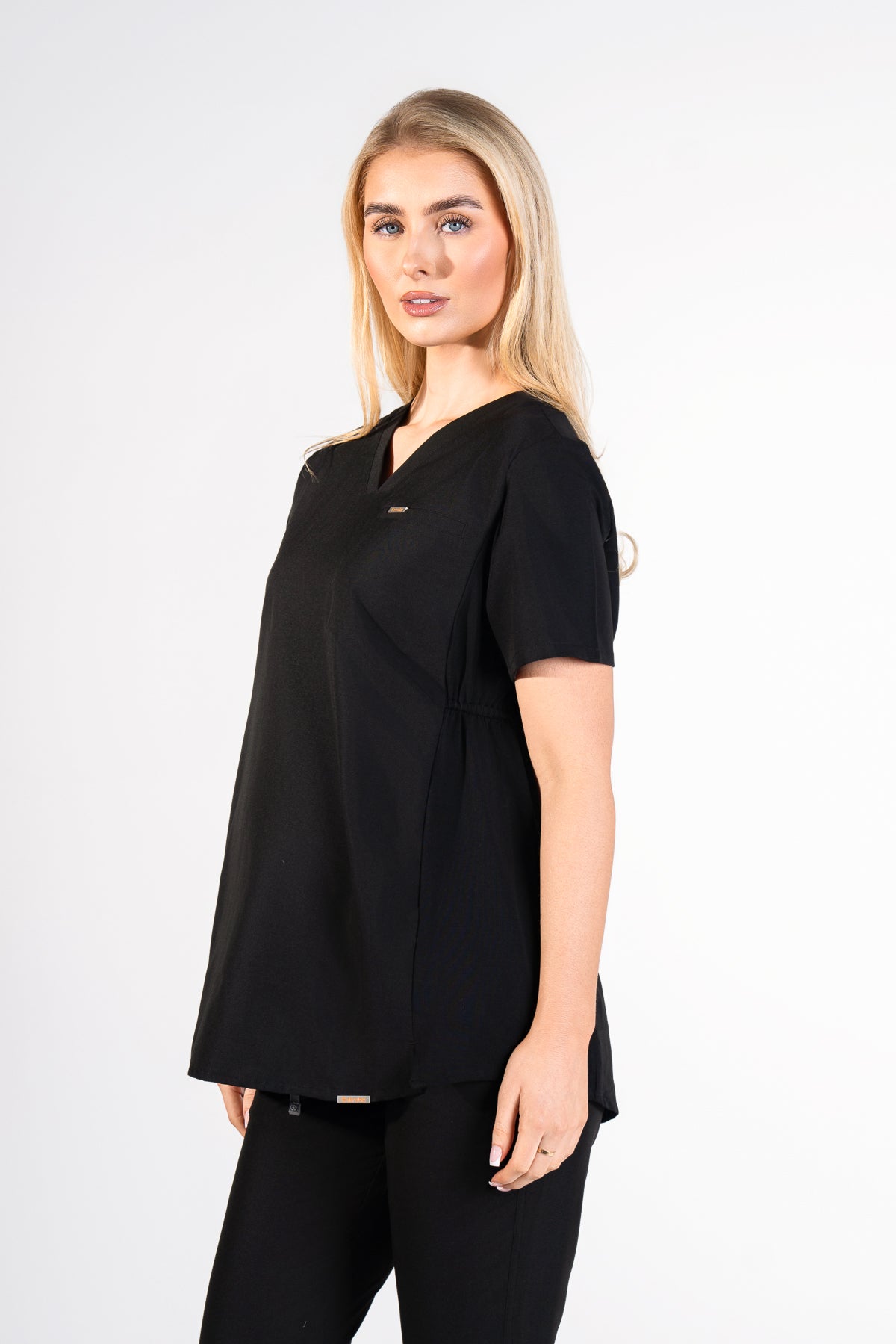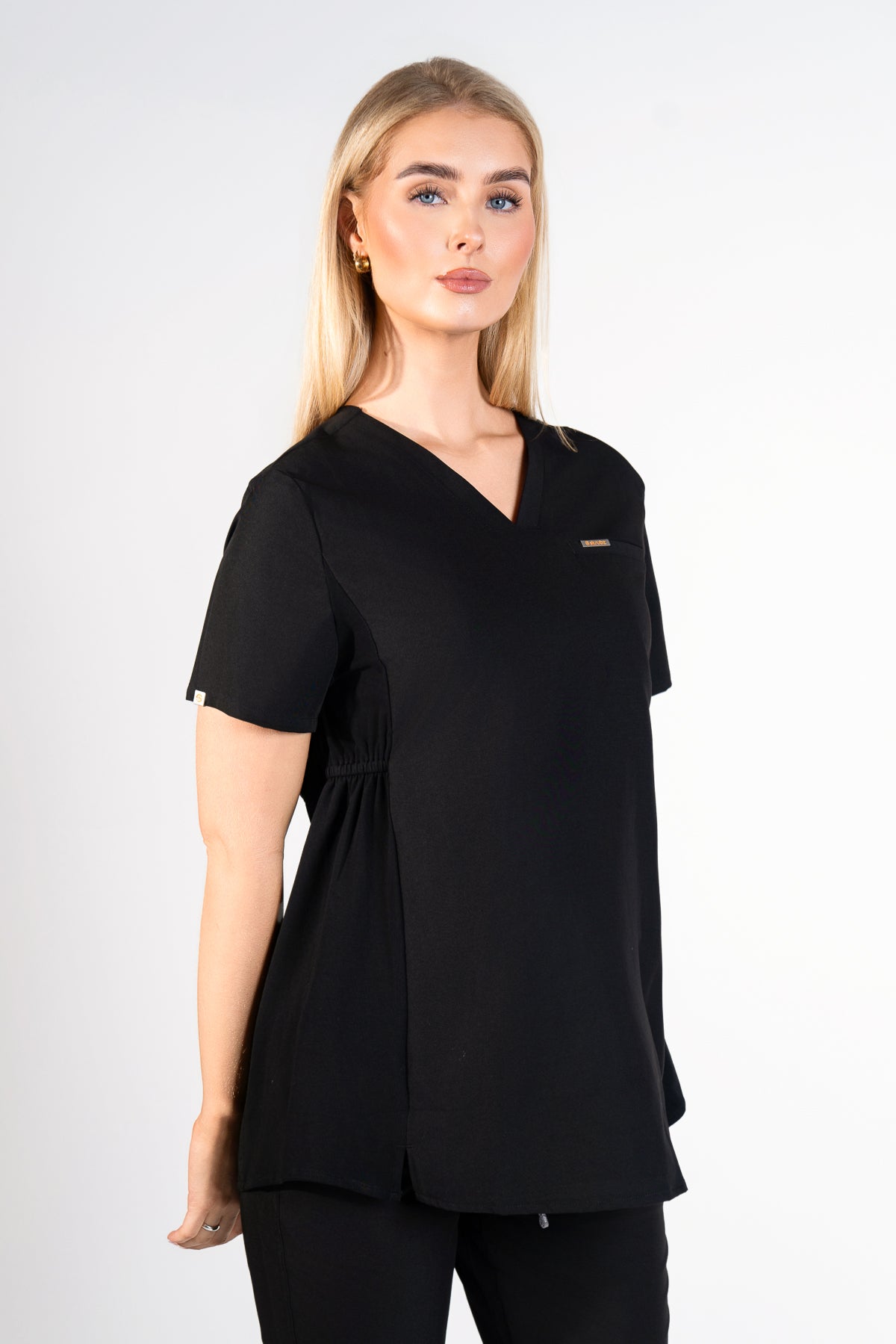 So impressed with this maternity scrub top! The V-neck cut is flattering, and the black color option is classic and chic. Perfect for staying comfortable and stylish during long days at the clinic.