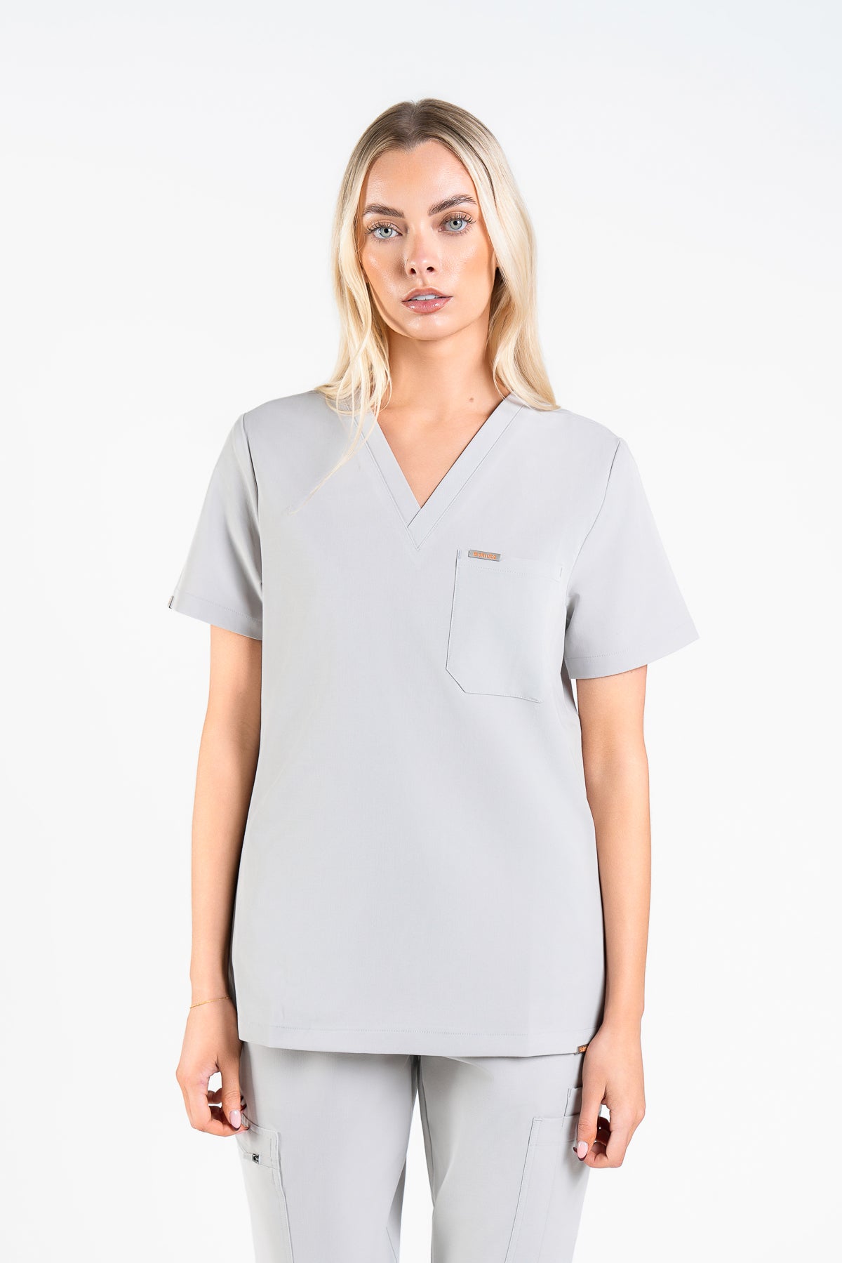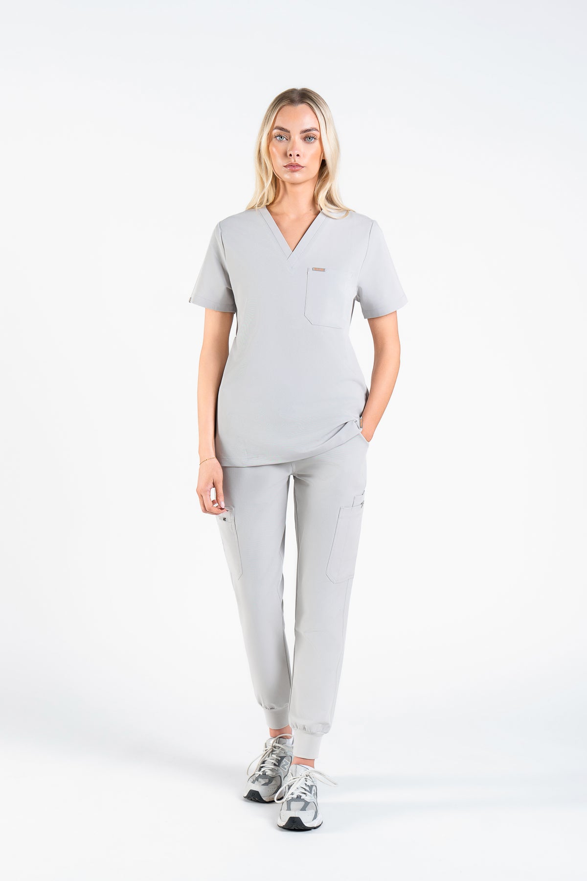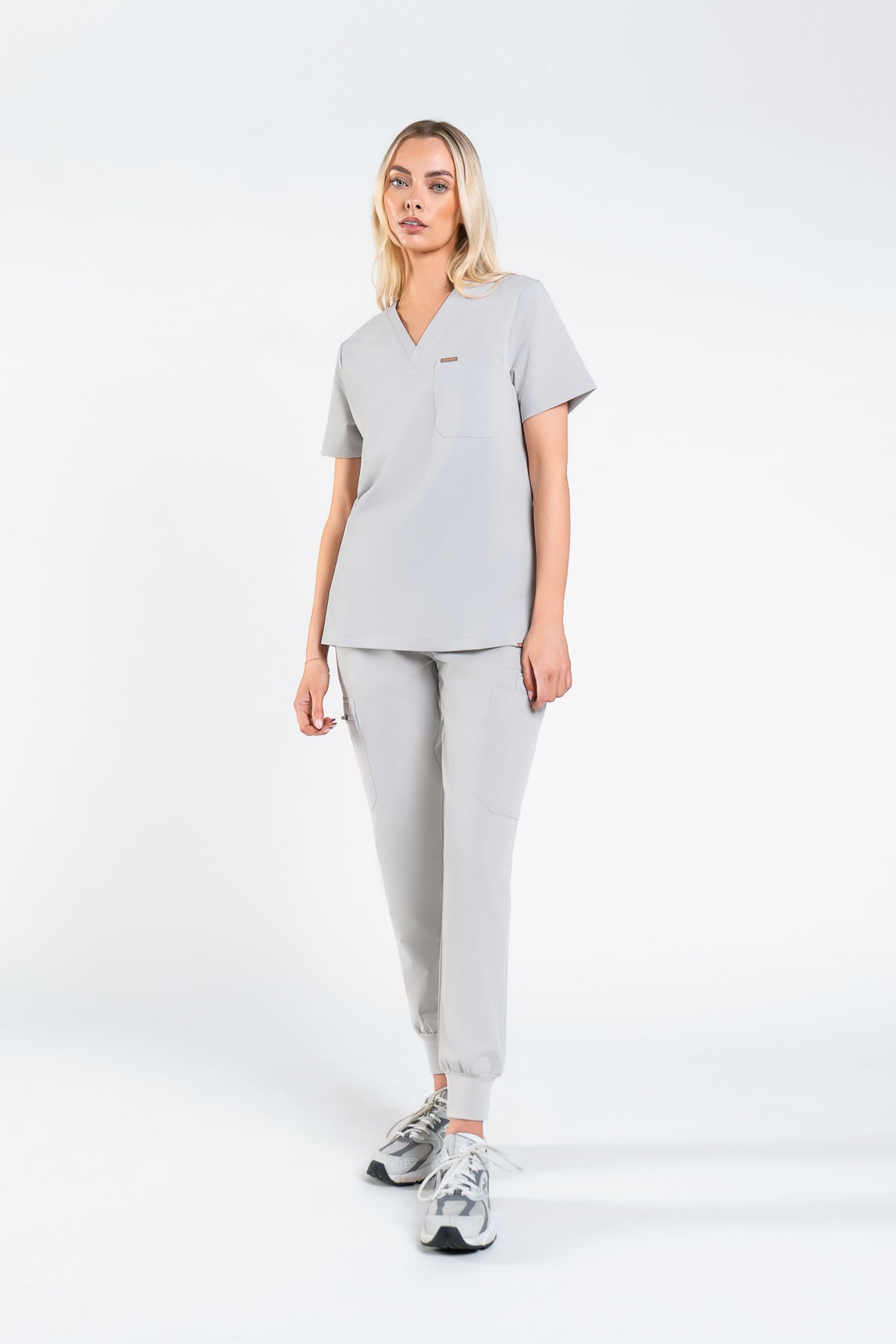 I’m really impressed with the quiet grey scrub top. It’s both stylish and functional. The colour is perfect for a professional environment, and it’s incredibly comfortable.