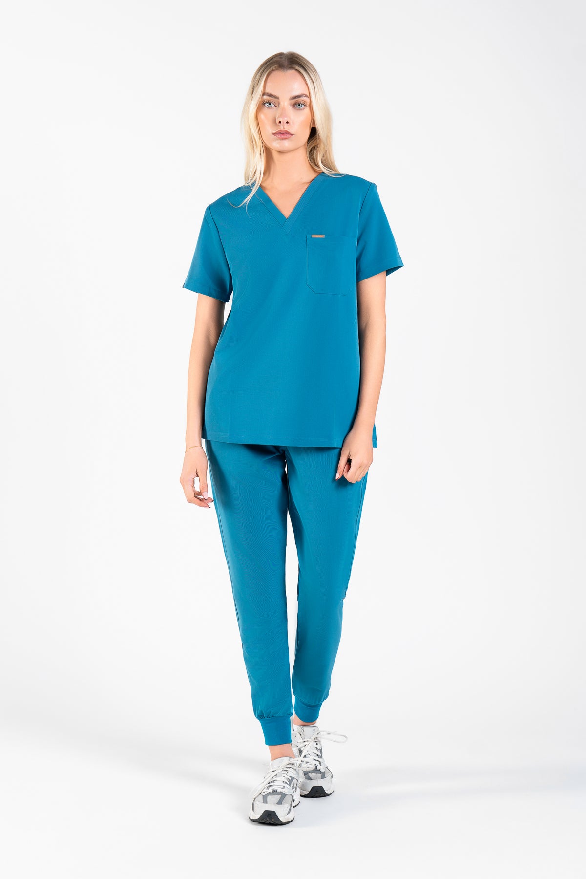 Introducing SKRUBZ ESSENTIALS a concept based on the idea of long lasting fashion. Our Yugen Women's Jogger Scrub Pants is part of our everyday essentials range built on timeless design, high quality and excellent fit. Yugen Women's Jogger Scrub Pants are designed in a regular fit, with a flattering tapered rib cuff creating an athletic look. An elasticated waist with an internal drawcord lets you adjust the fit allowing free movement and breathability. Our essentials collection are all about garments that stand the test of time, pieces that tell a story day in, day out. The jogger pants feature our metal labels with engraving written SKRUBZ logo, enhancing the appearance of the collection. The Yugen jogger pant features 4 way stretch, breathability, anti microbial and anti-wrinkle fabric.