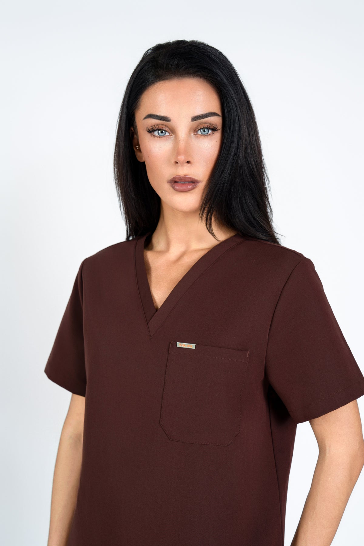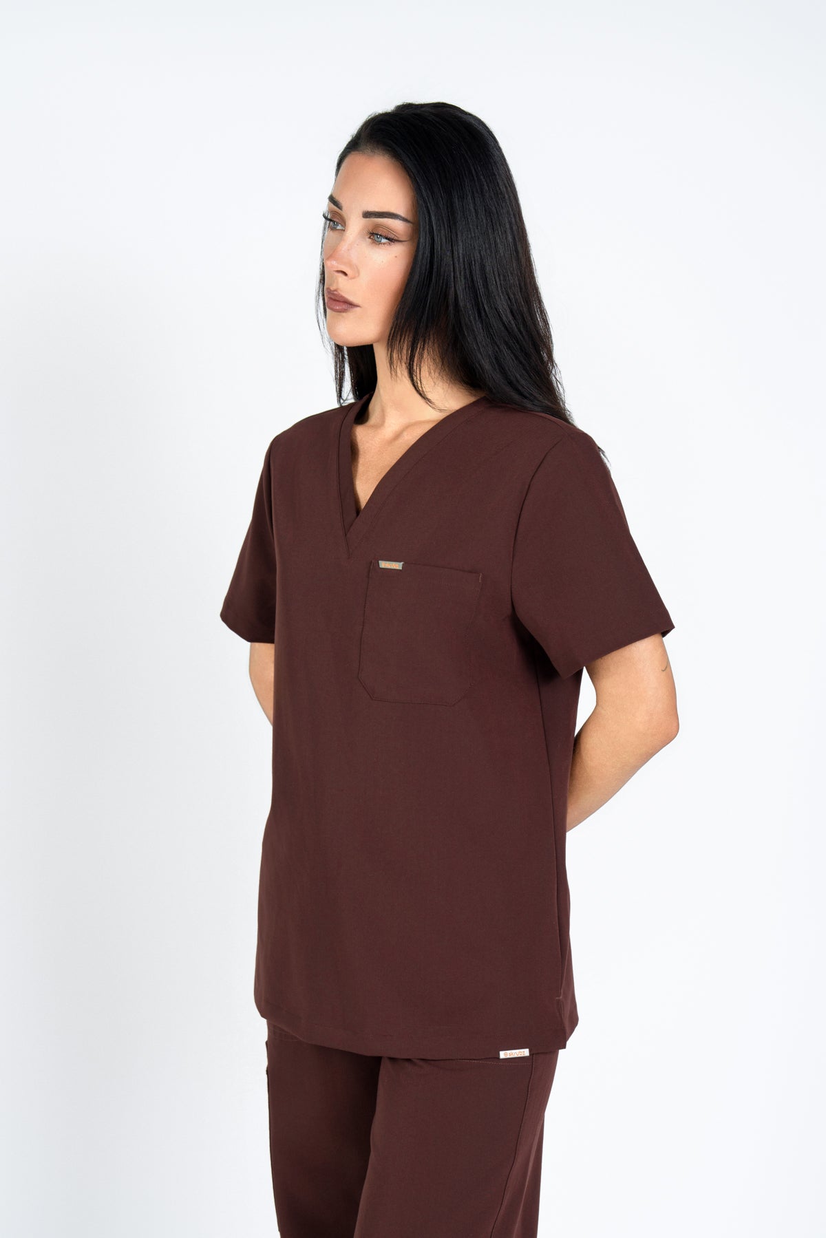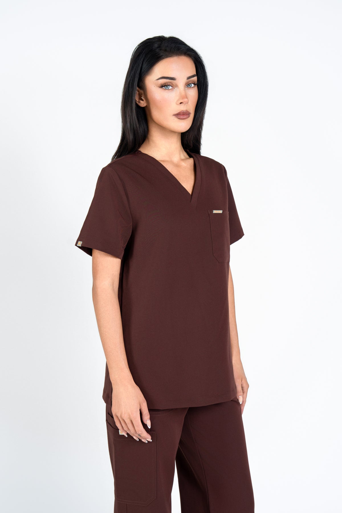 I’m very satisfied with this black scrub top. It’s professional, comfortable, and the quality is excellent. The pocket is conveniently located and very practical.