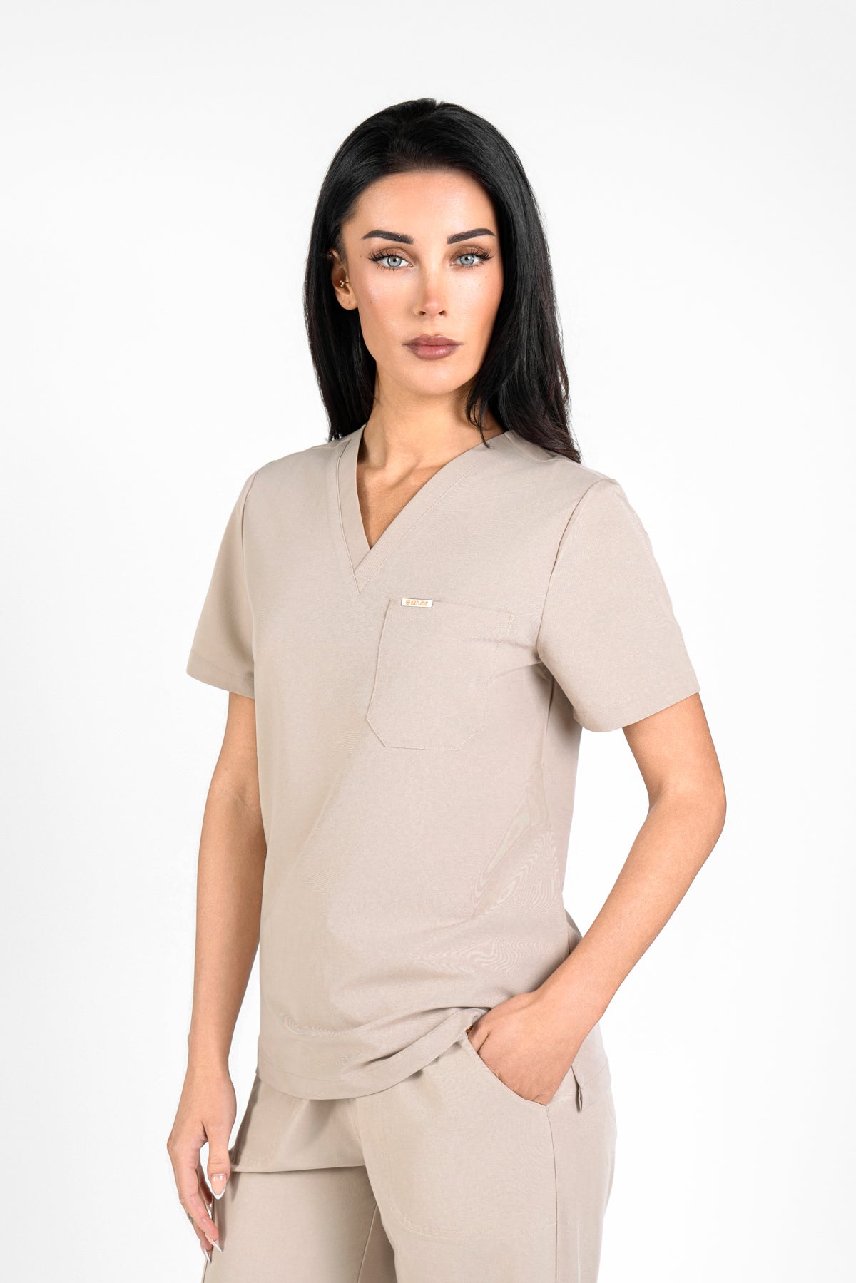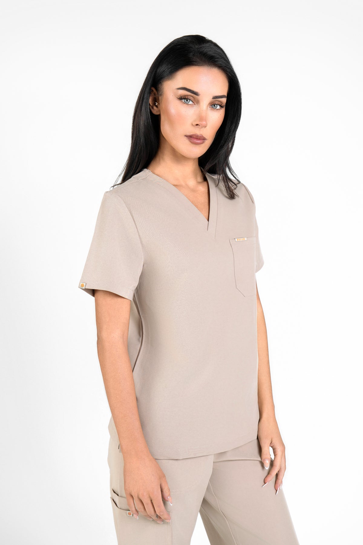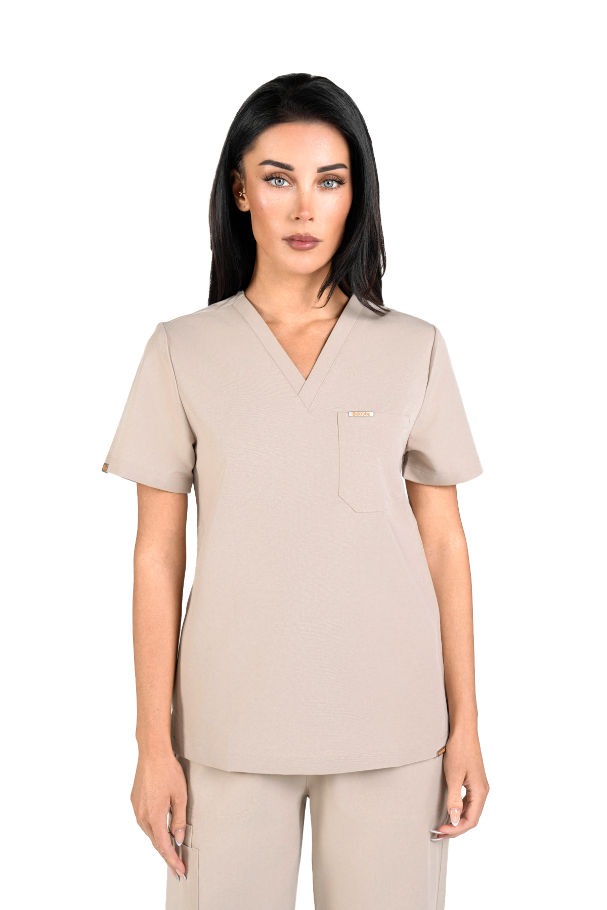 This sand stone scrub top is exactly what I needed. The fit is perfect, and the colour is great for a professional setting. The pocket is very functional and useful.