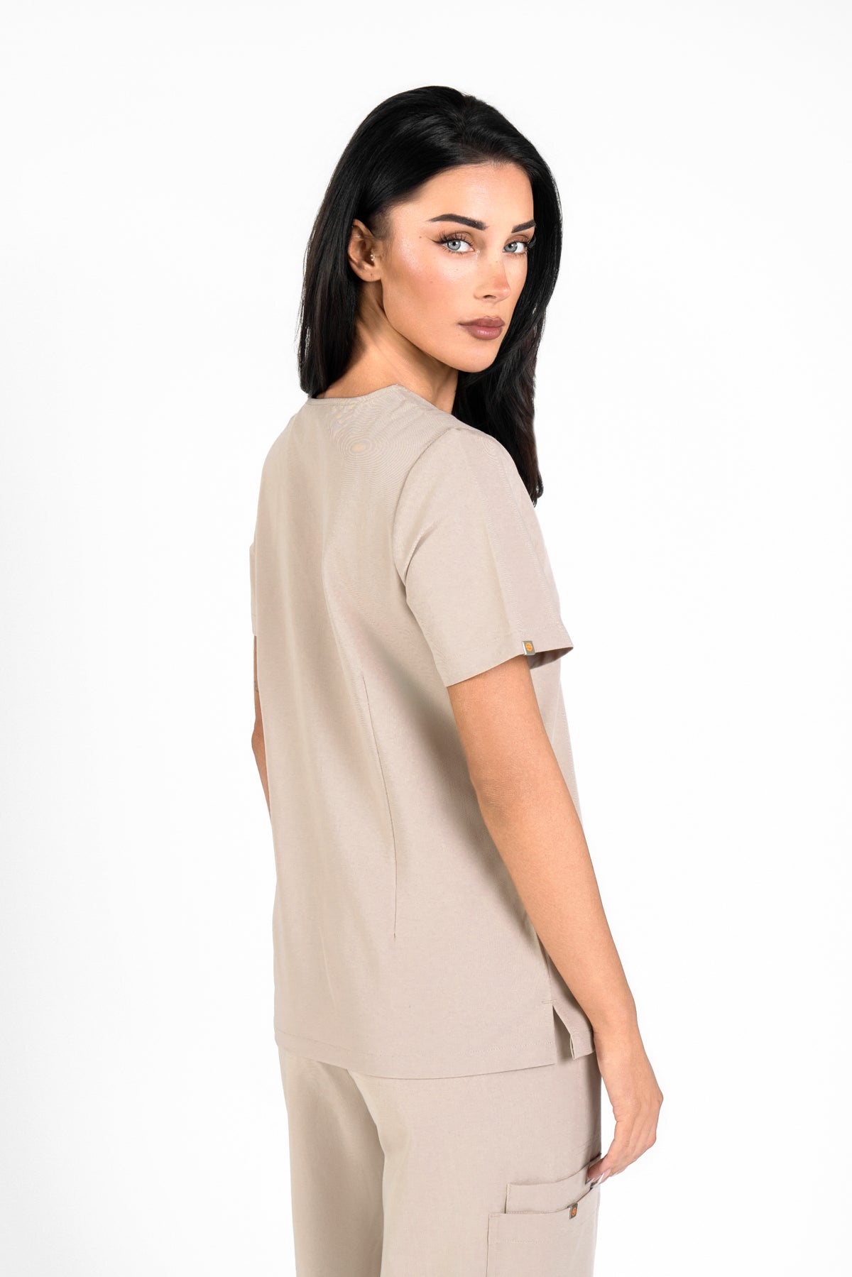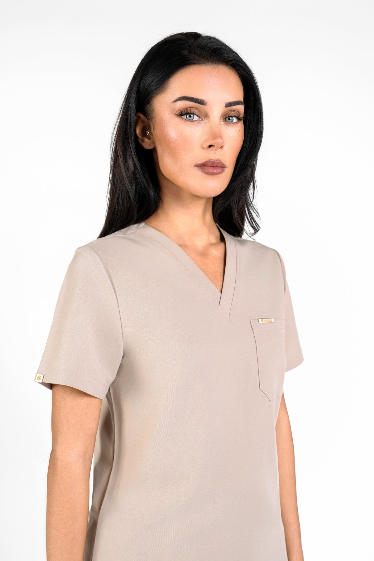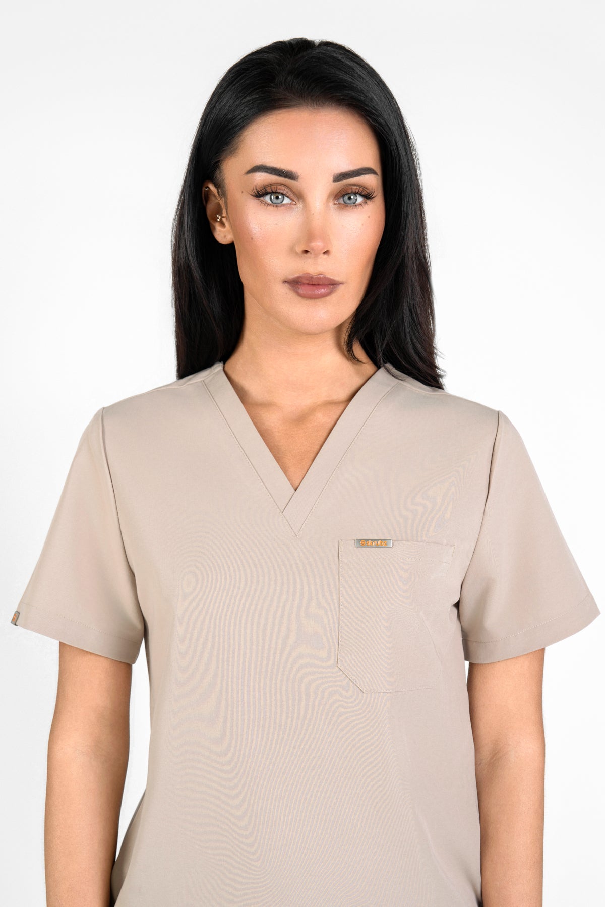 This sand stone scrub top is exactly what I needed. The fit is perfect, and the colour is great for a professional setting. The pocket is very functional and useful.