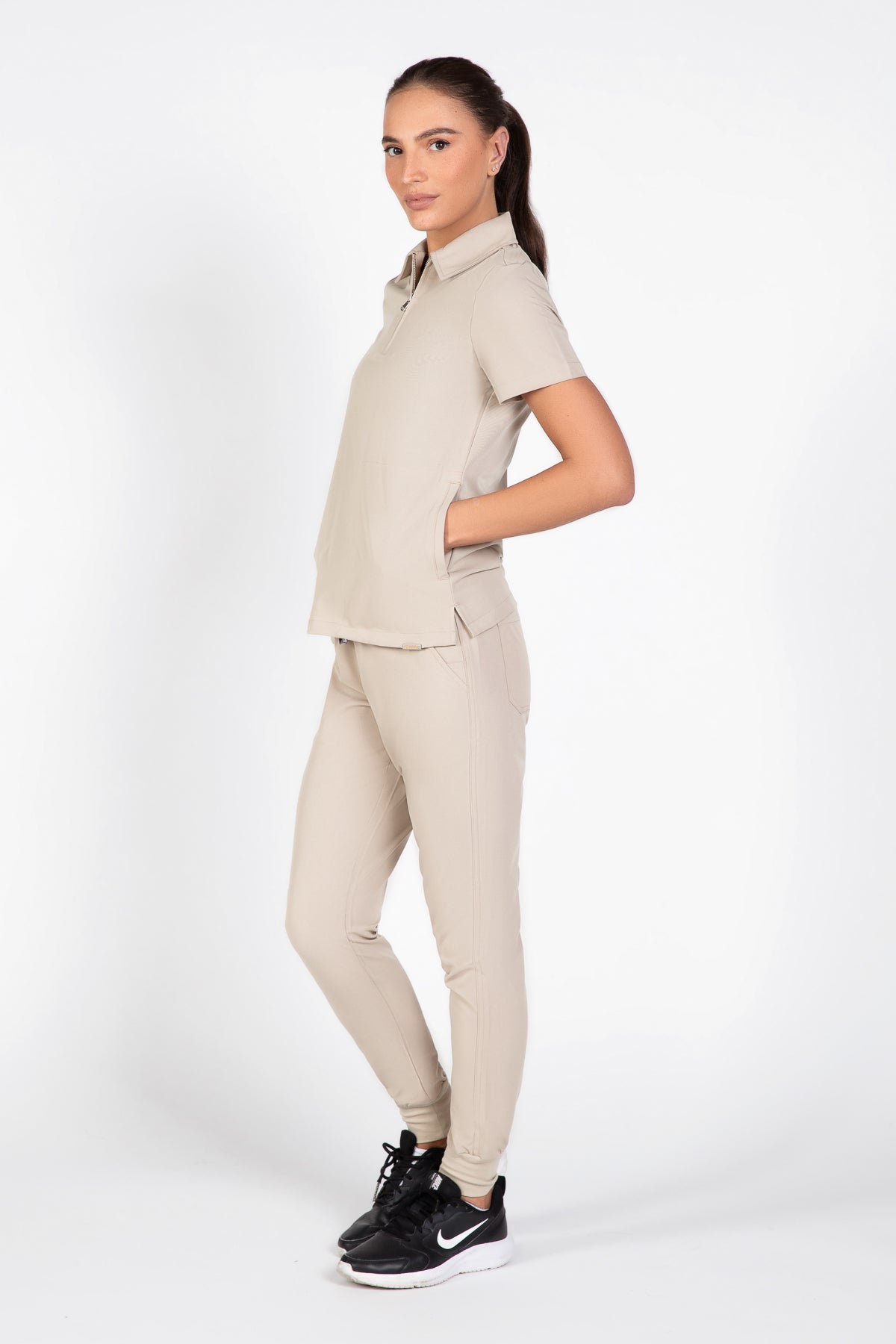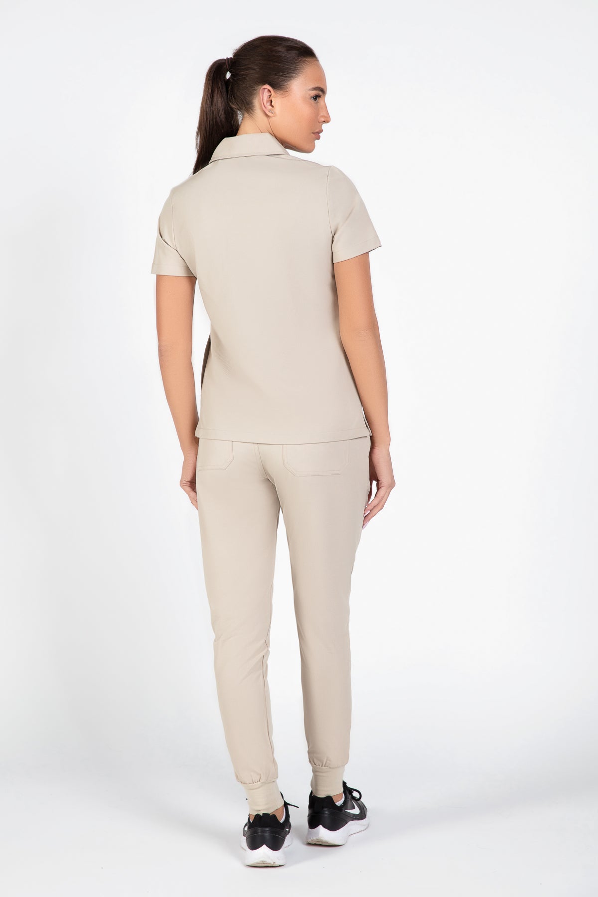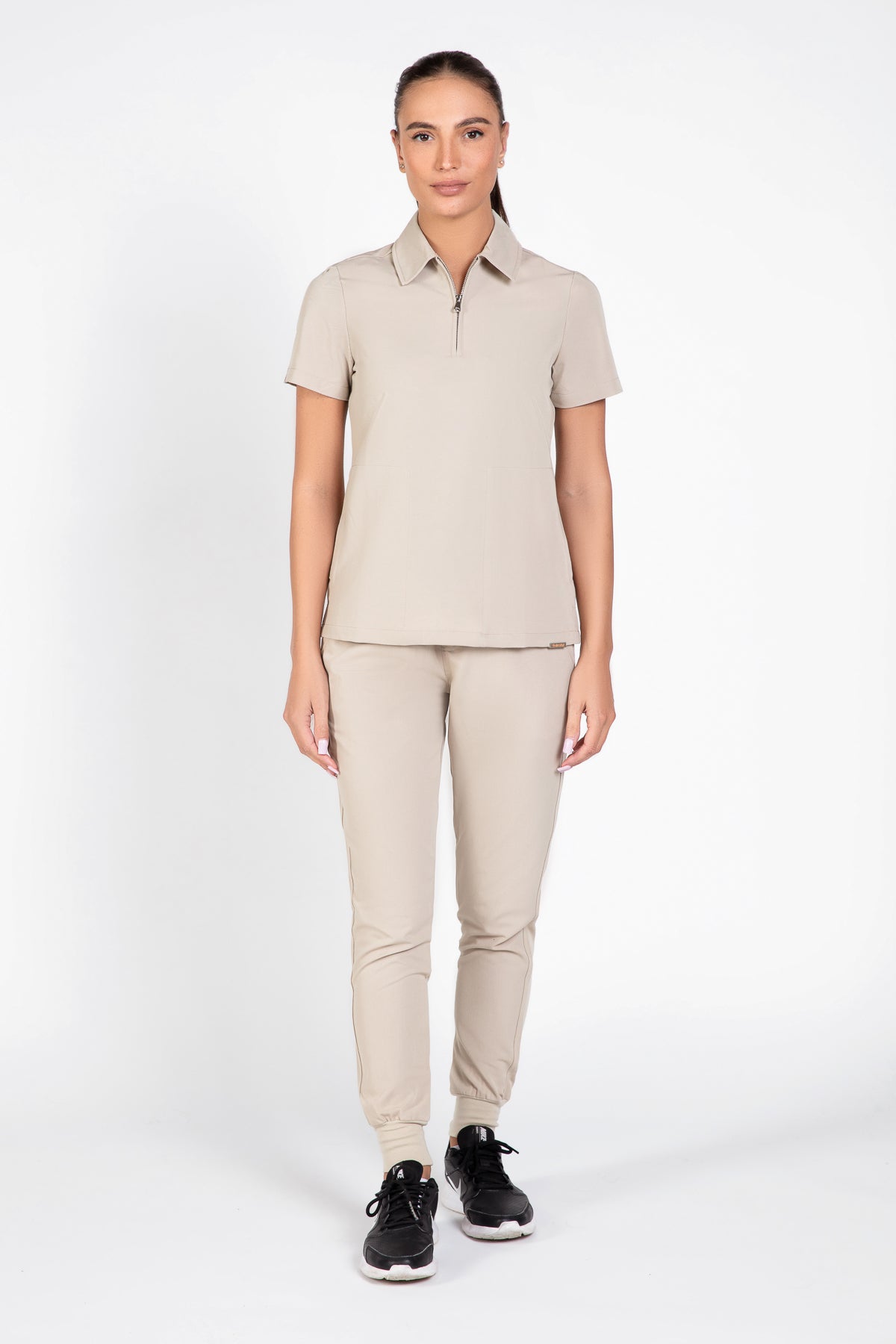 The sand stone scrub top is both stylish and functional. The fit is perfect, and the colour is great for a professional environment.