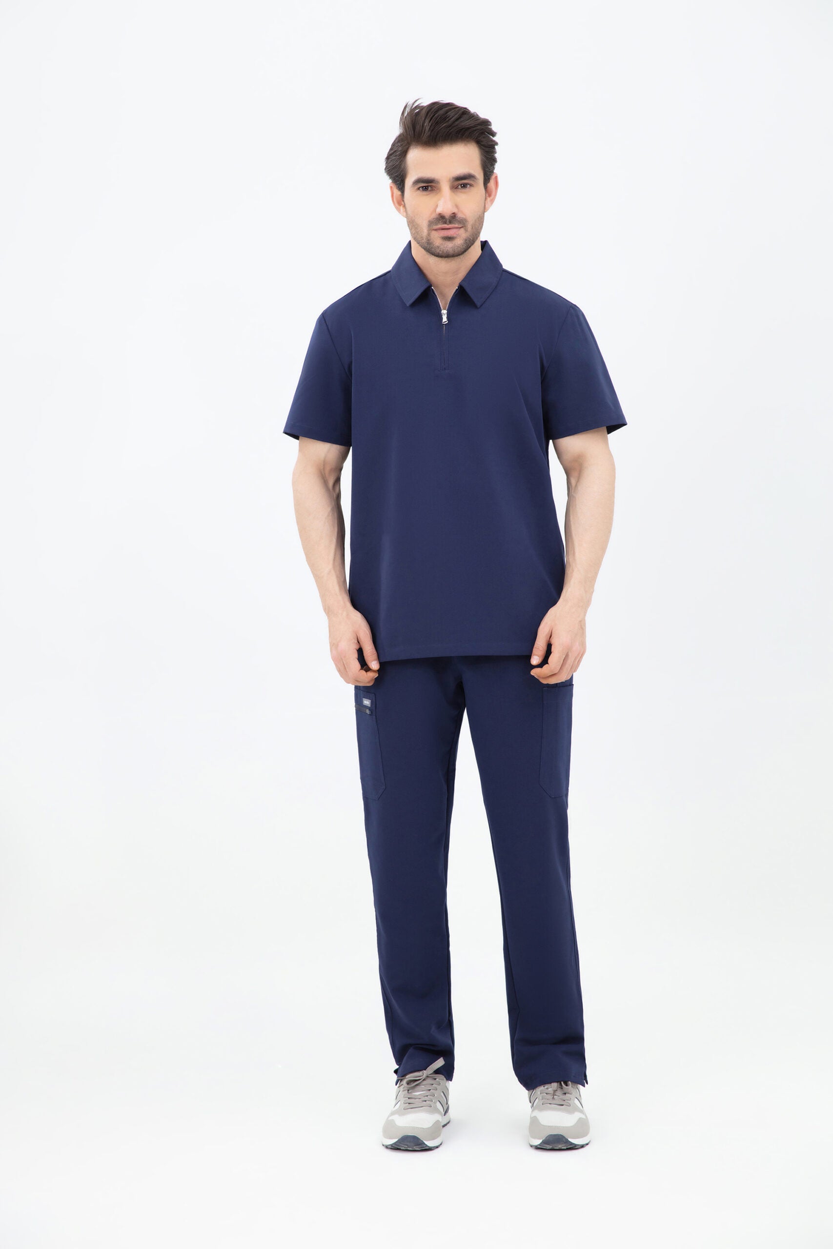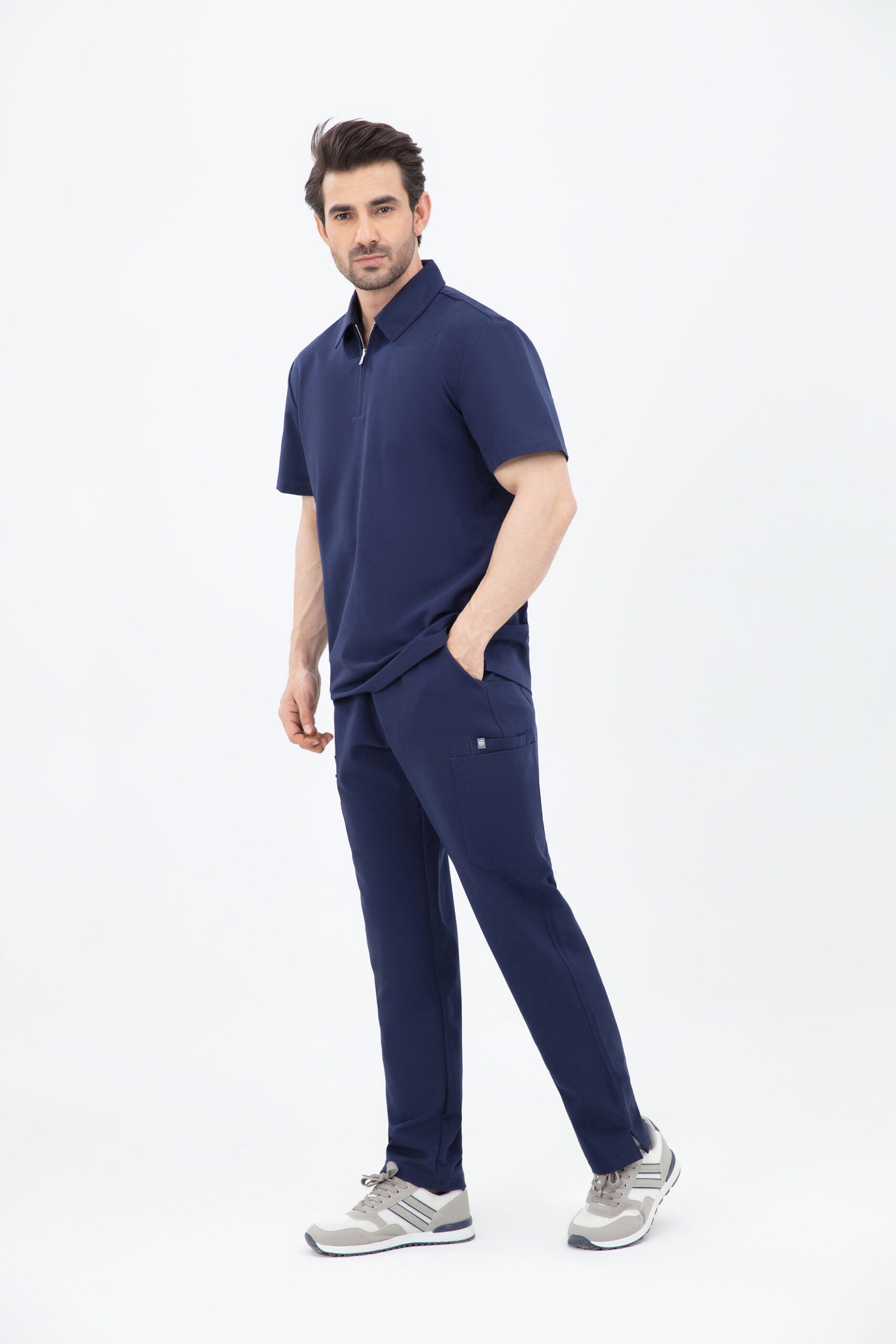 The navy scrub is both stylish and practical. The zip neck design is a great feature, and it’s very comfortable.