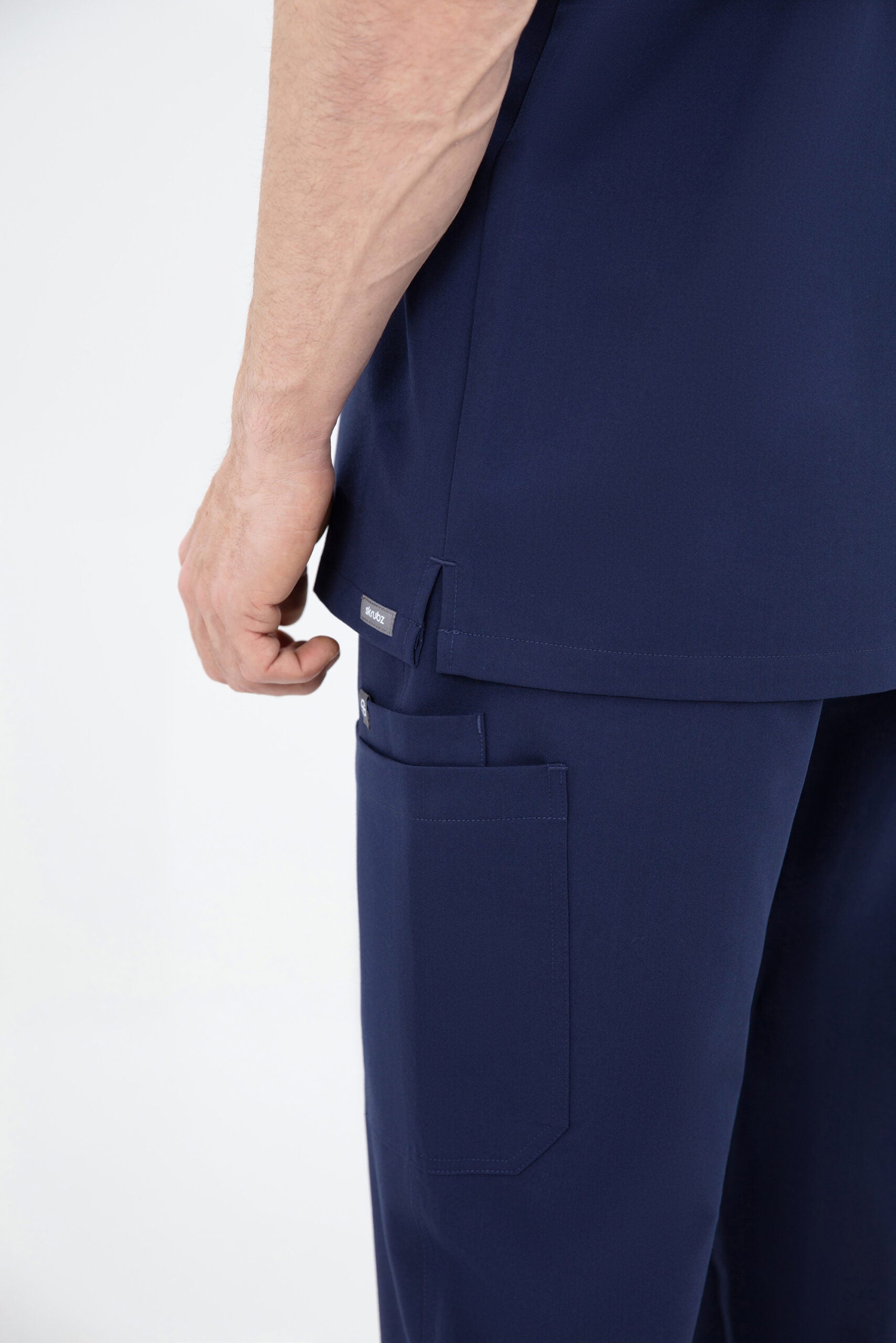 Embrace the utility trend with these SKRUBZ-branded Hachi Cargo Scrub Pants with 9 Pockets, perfect if you desire both style and function. The lightweight fabric has such a soft feel against the skin that you’ll hardly know you’re wearing them but the multitude of 9 pockets will surely remind you as they make it easier than ever to keep your essentials close at hand. The straight-fit cargo silhouette offers a half-elasticated waistband for both fashionability and added comfort, nailing the smart casual look. The relaxed-fit cargo pants are fitted at the waist to allow the fabric to compliment your figure and are perfect for those who like to tuck their top into their bottoms for a desired professional look. Additional features include our side split hemline and 4-way stretch material, making these cargos extremely comfortable. The Hachi Navy Cargo Scrub Pants with 9 Pockets feature breathability, anti-microbial and anti-wrinkle fabric.