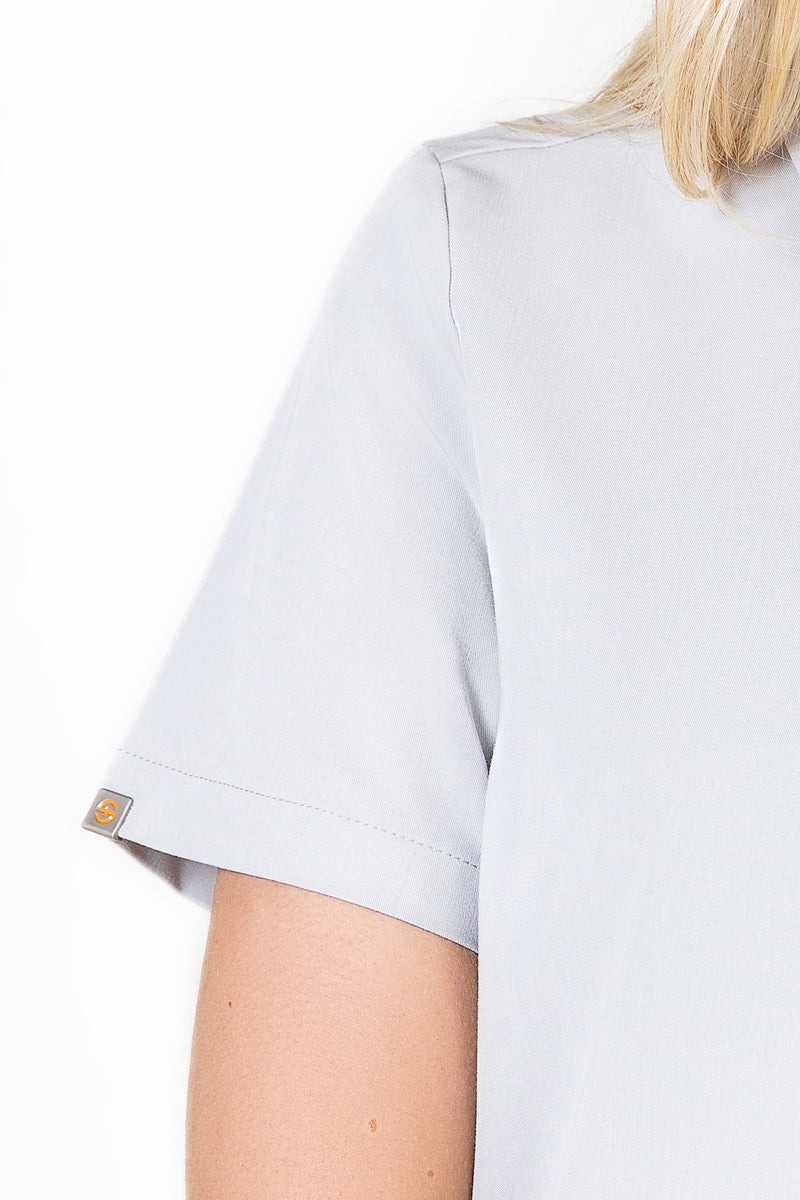 This quiet grey scrub is fantastic! It’s soft, comfortable, and the colour is perfect for a professional look. The pocket is very handy for keeping small items accessible.