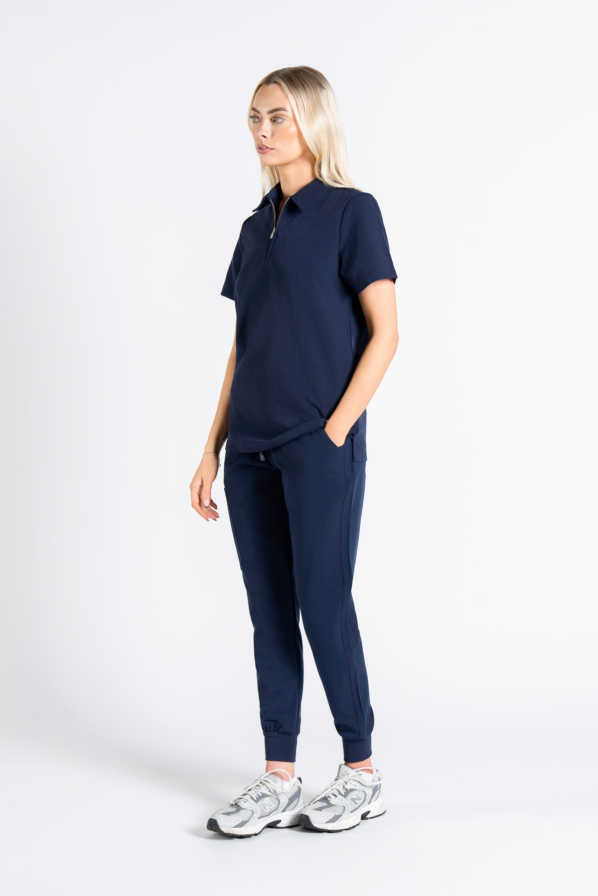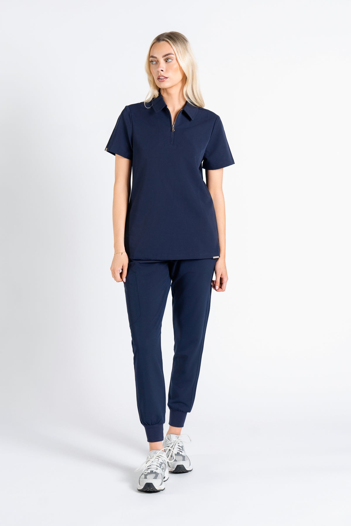 This scrub is everything I’ve been looking for. The navy colour is classic and the material is incredibly soft. The zip neck detail is my favorite!