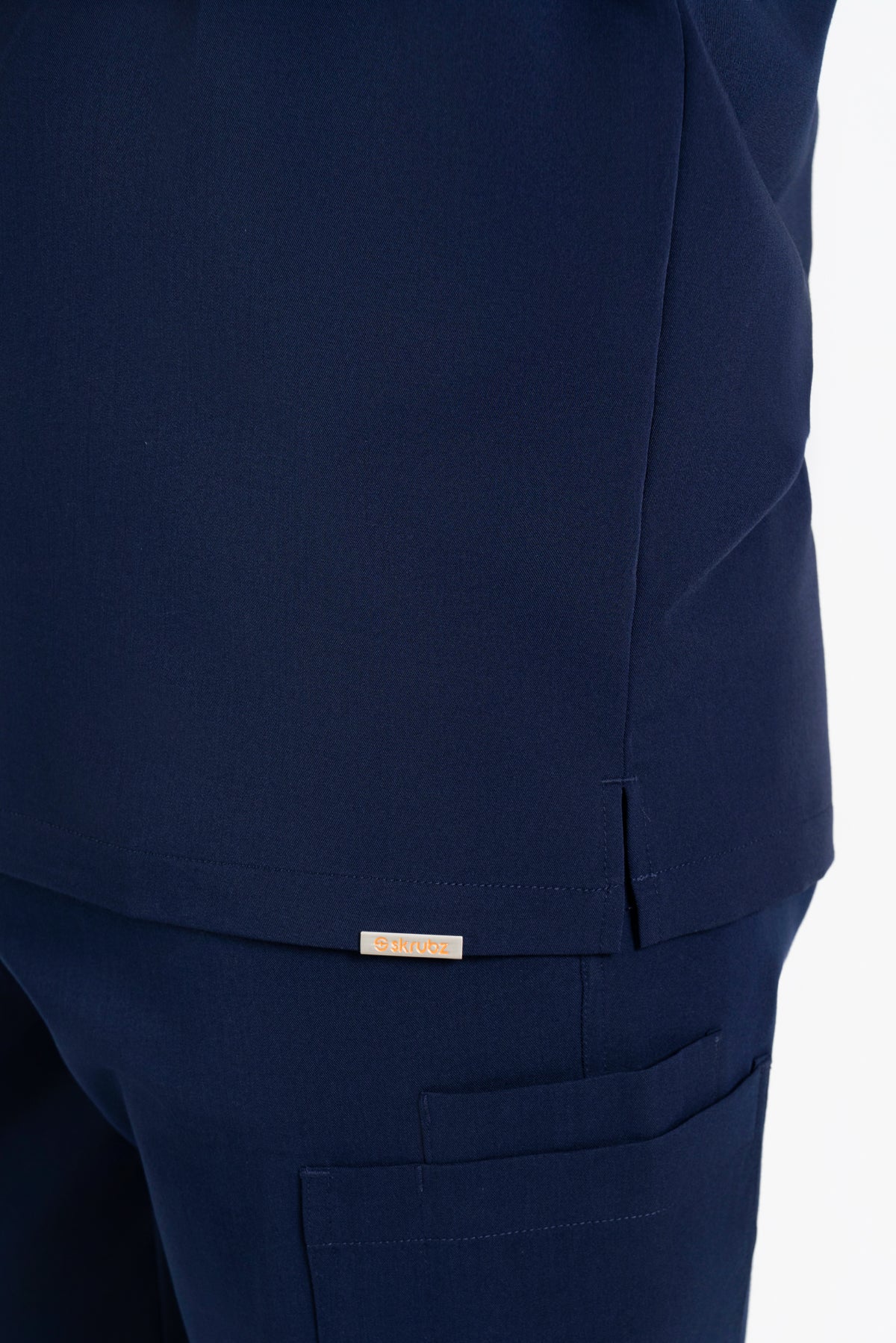 The navy scrub is perfect for my dental practice. The zip neck design is practical, and it’s incredibly comfortable.