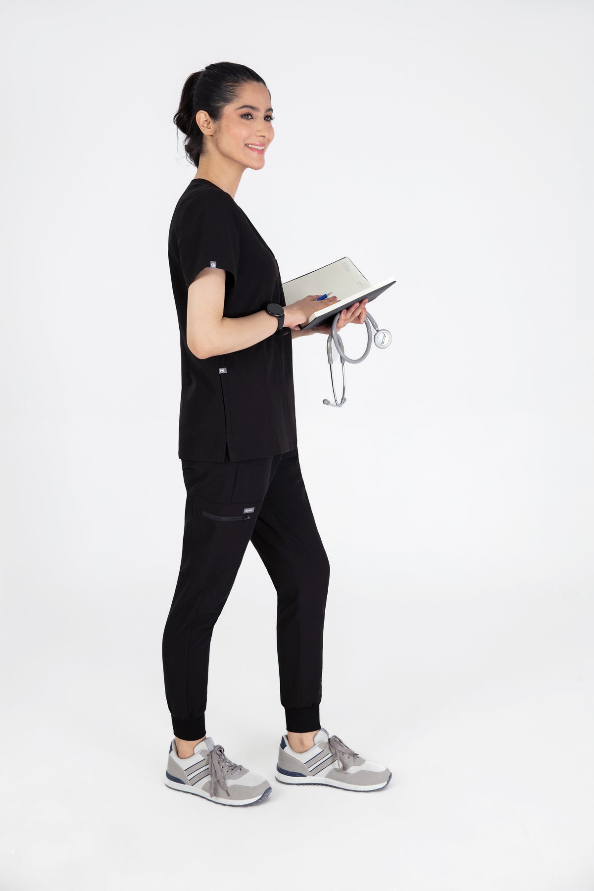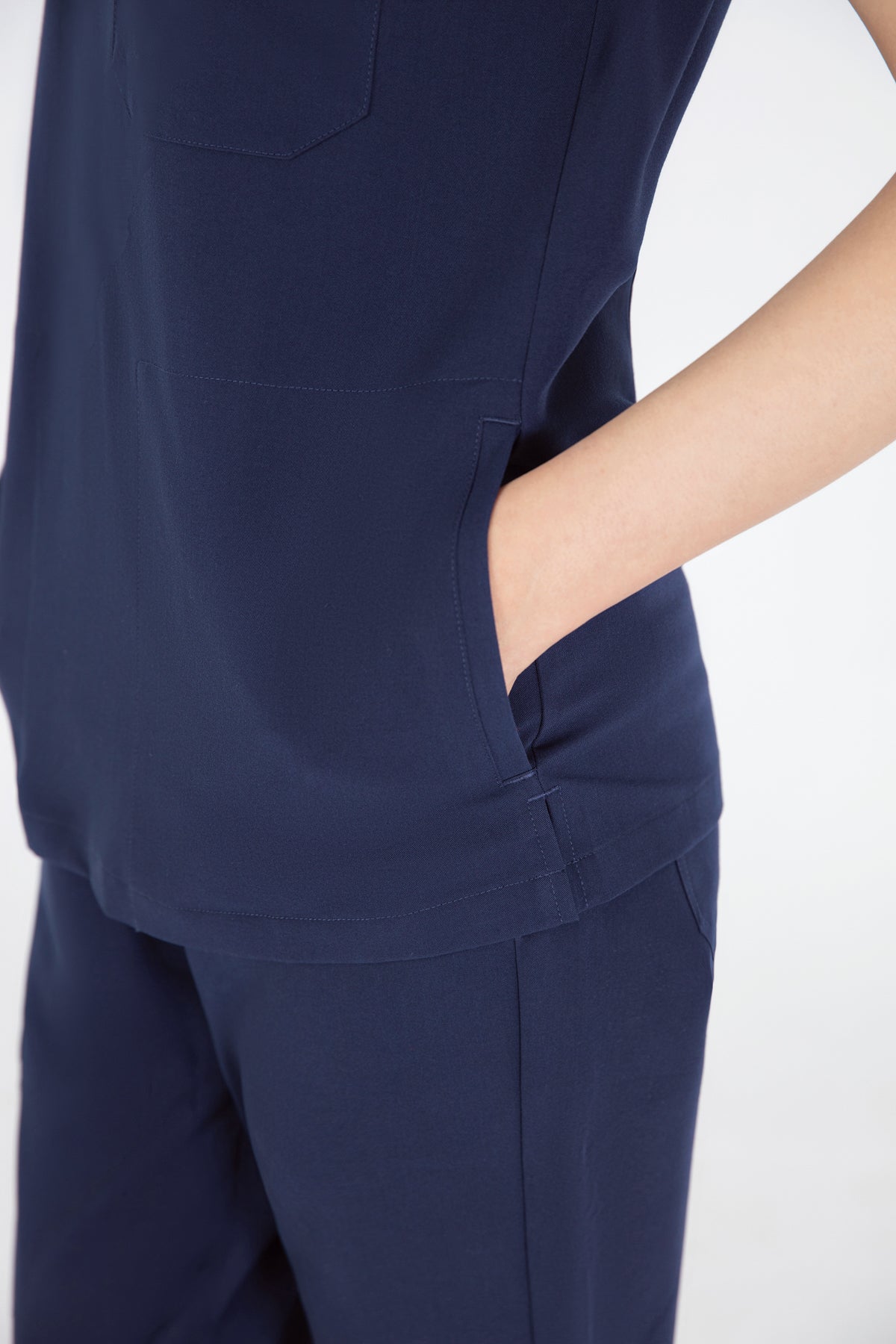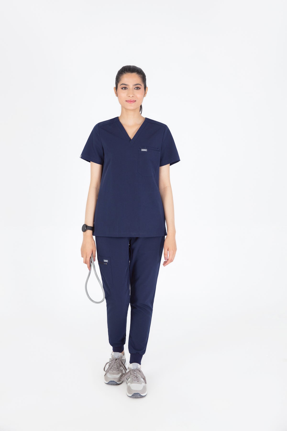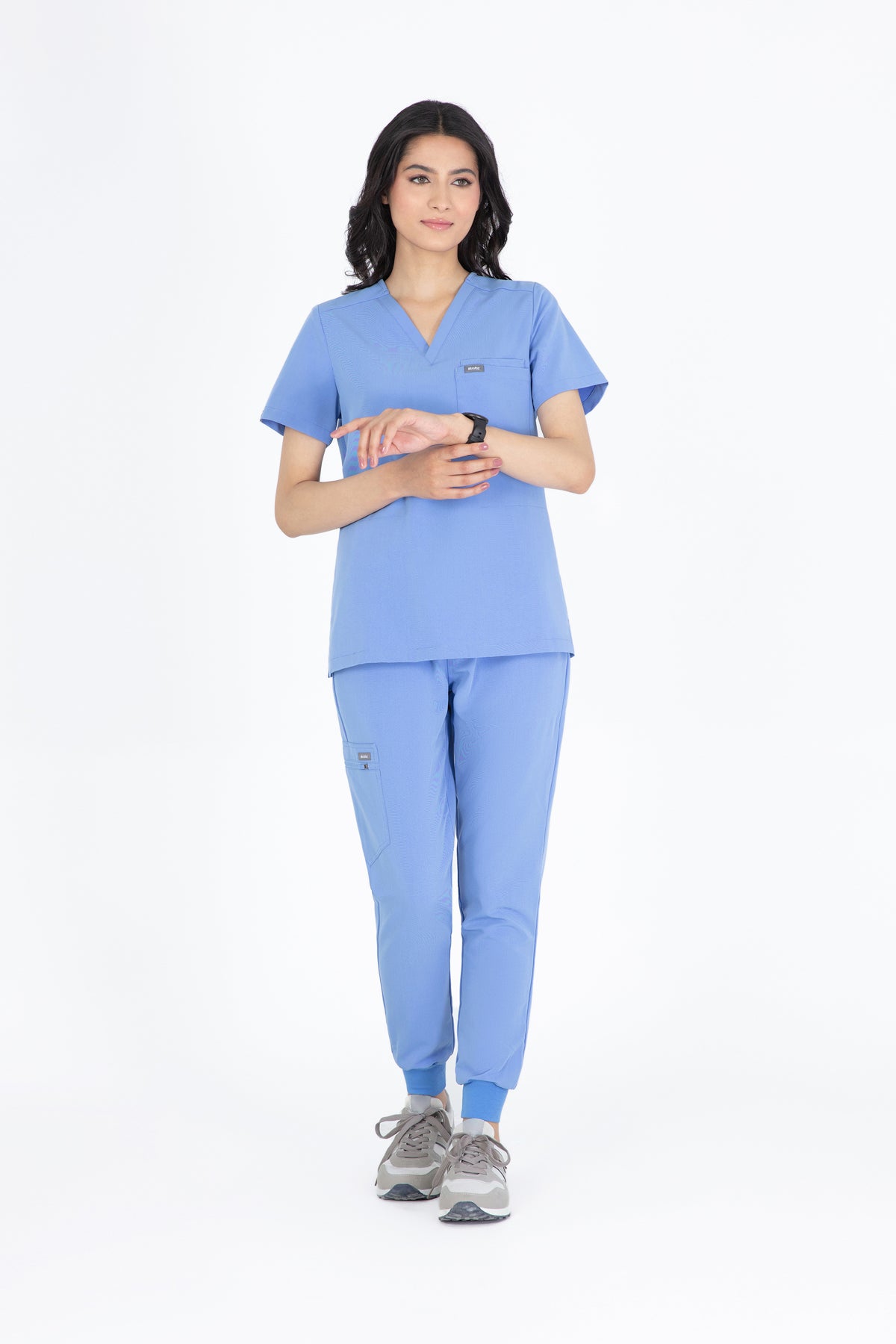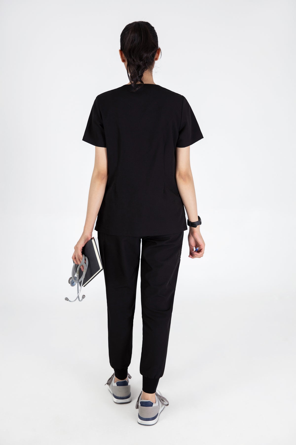 The black V Neck Scrub is so chic! The fit is excellent, and the invisible pockets are a wonderful bonus. It keeps me prepared and looking professional all day.