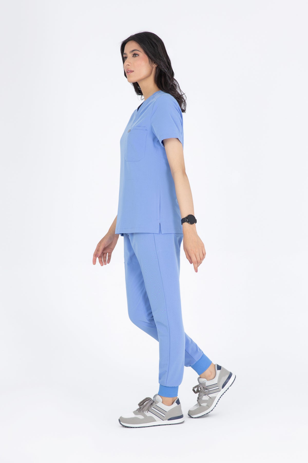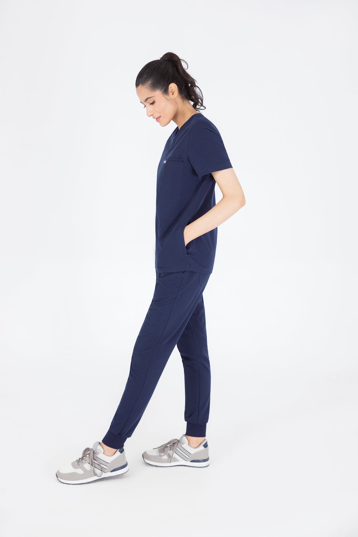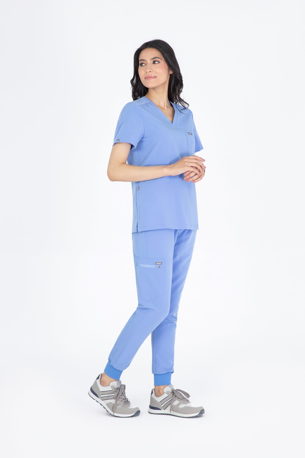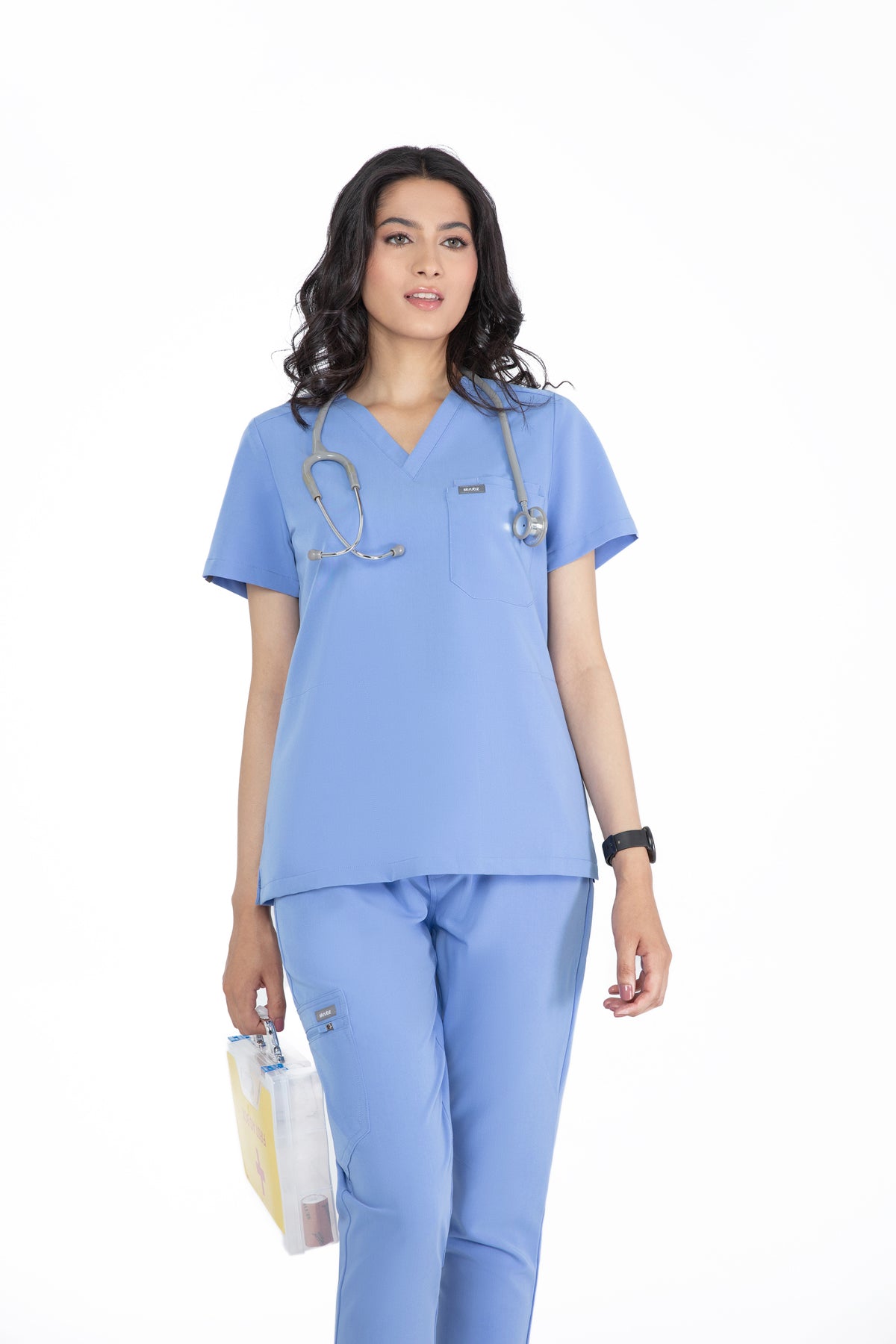 The black V Neck Scrub is so chic! The fit is excellent, and the invisible pockets are a wonderful bonus. It keeps me prepared and looking professional all day.
