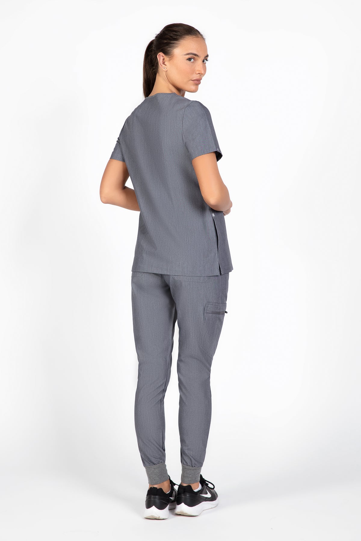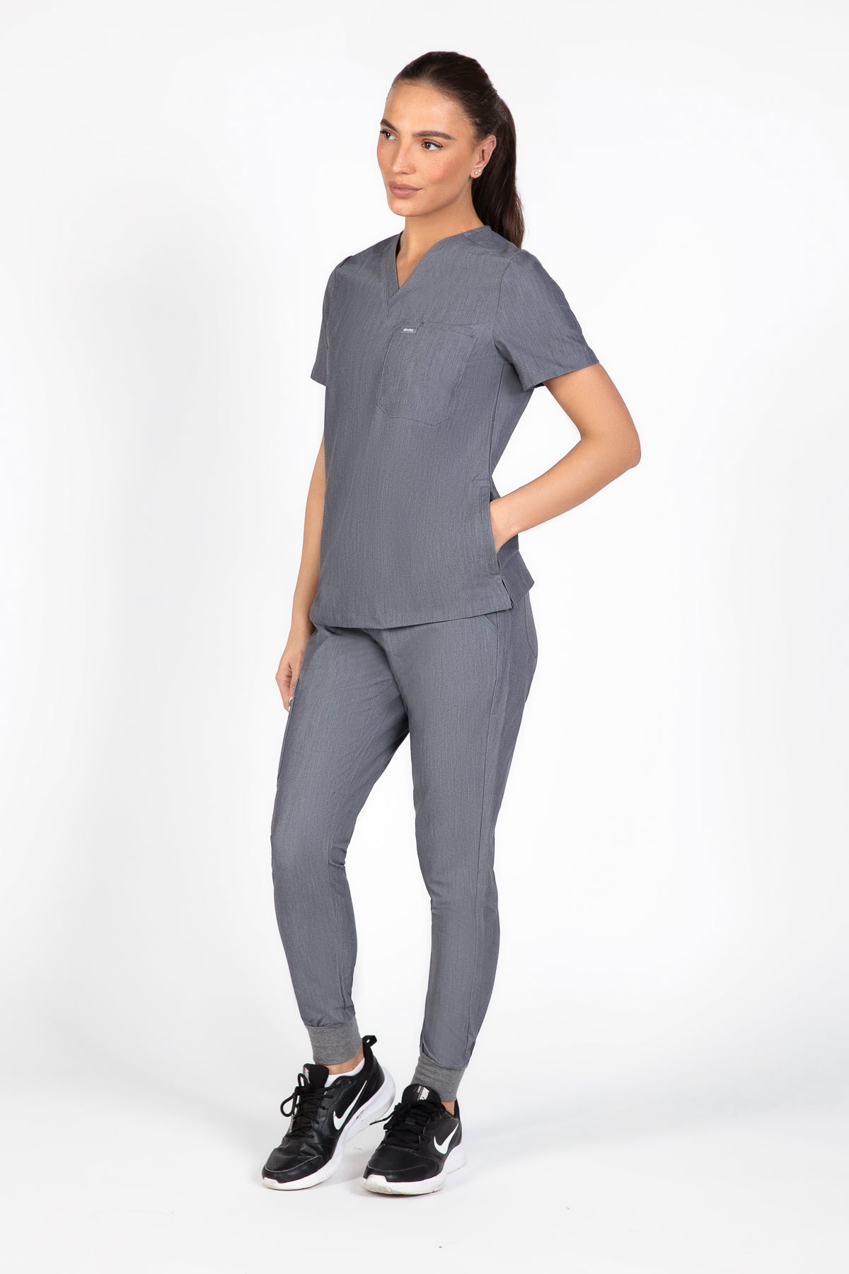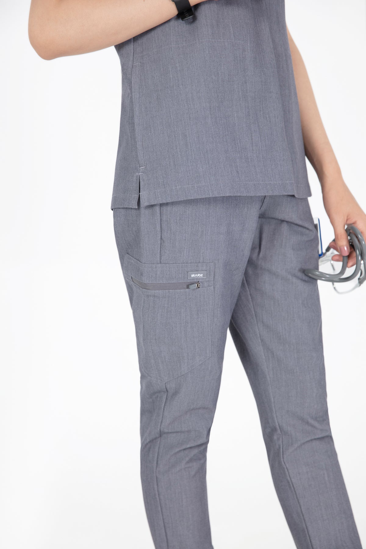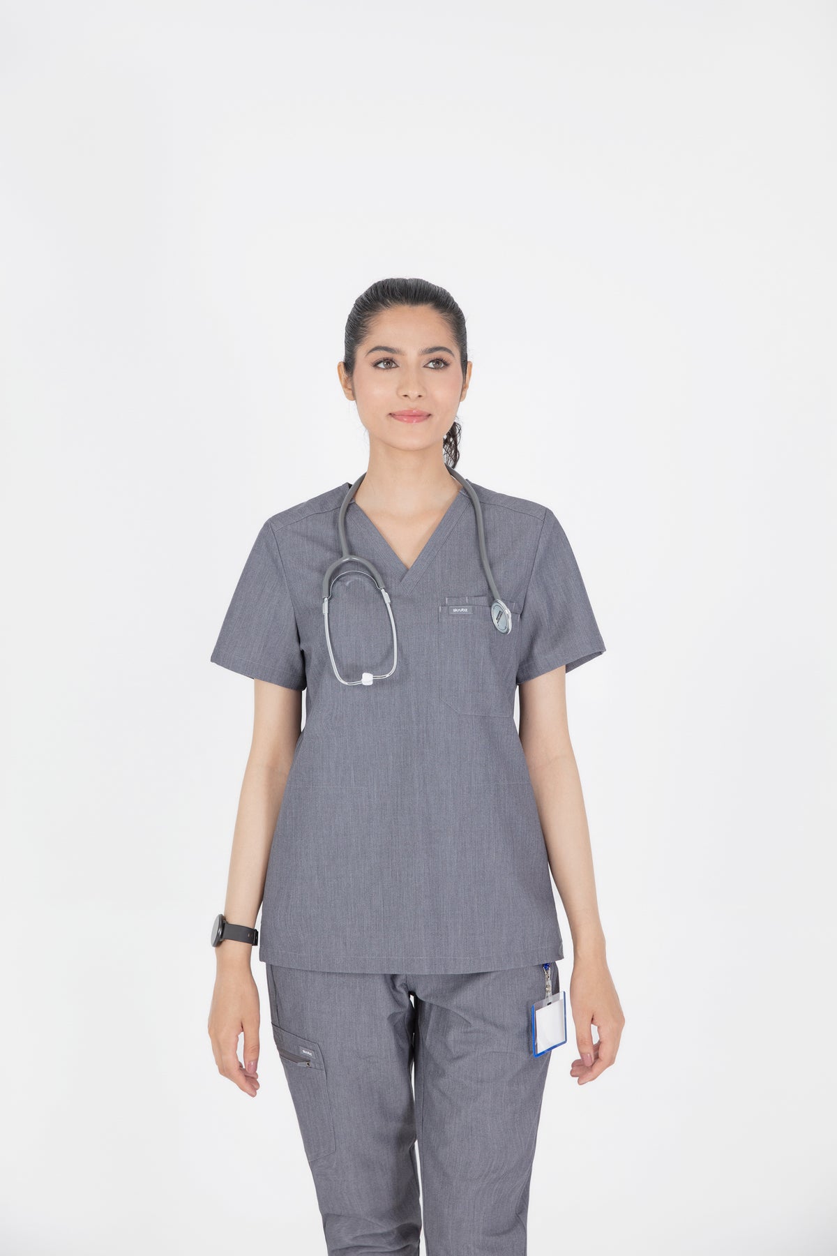 The quiet grey scrub looks is fantastic for a professional look. It’s soft, comfortable, and the color is just right for the workplace. The pocket is a nice touch for practicality.