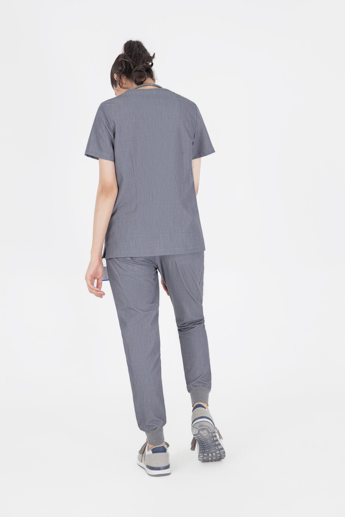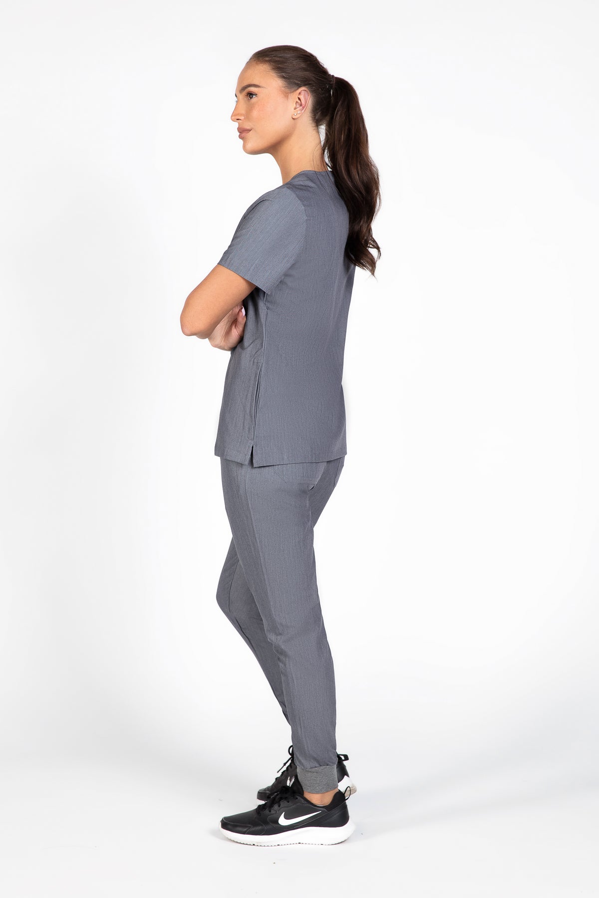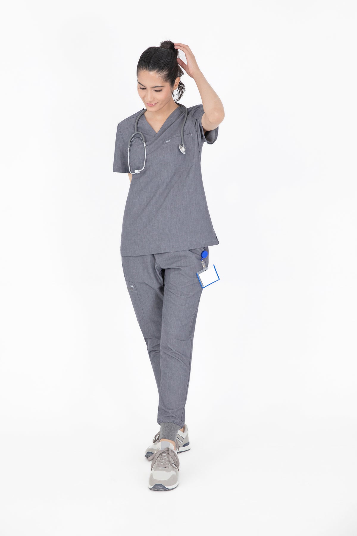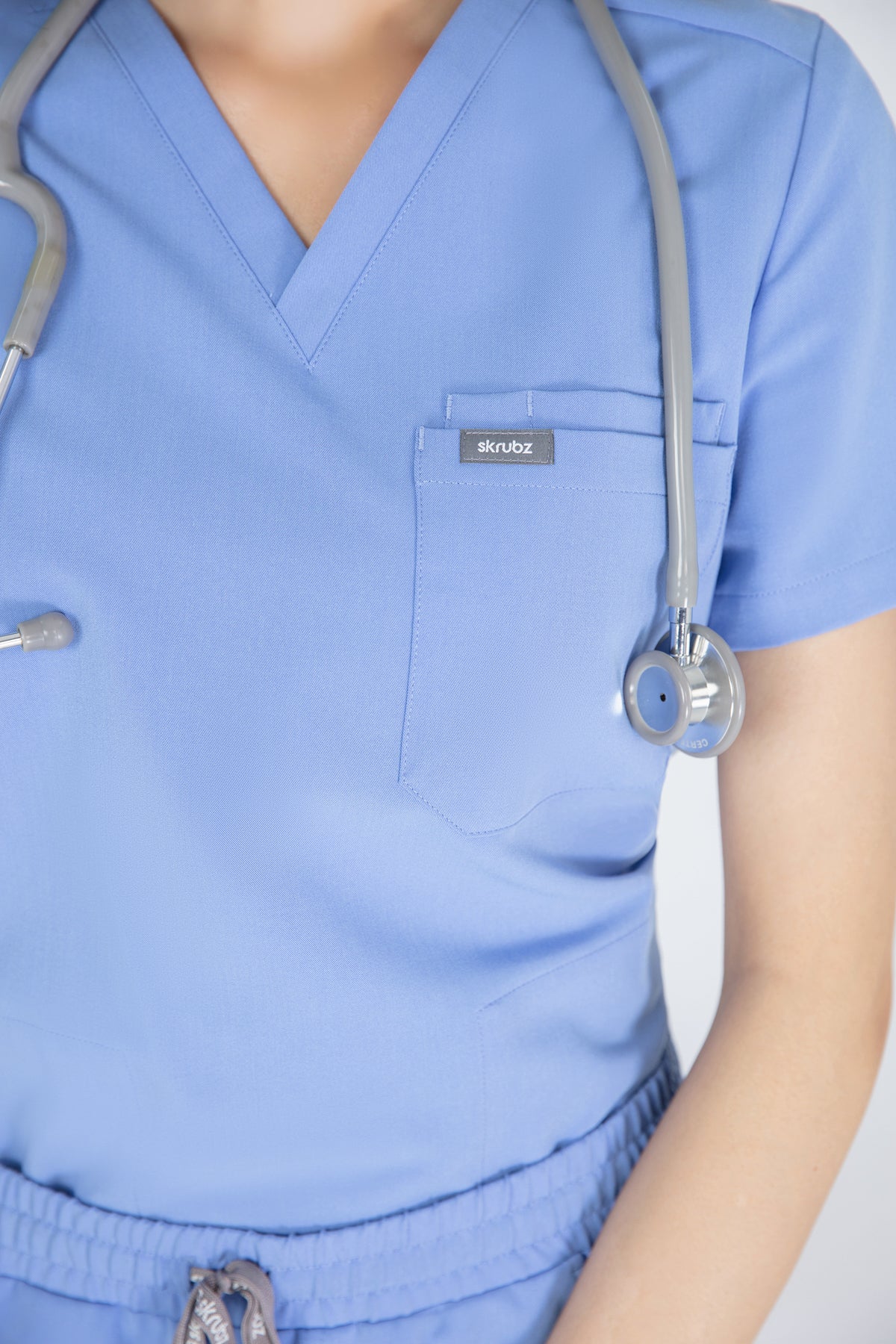 The quiet grey scrub looks is fantastic for a professional look. It’s soft, comfortable, and the color is just right for the workplace. The pocket is a nice touch for practicality.