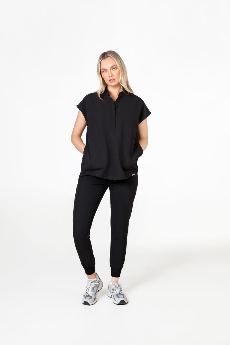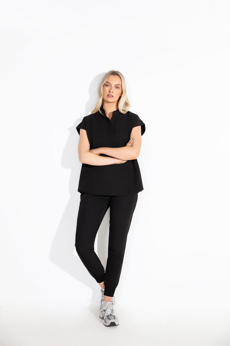 As a dentist, I’ve struggled to find stylish scrubs, but these in Black are exactly what I’ve been looking for. The collar makes such a difference, and they’re very comfortable.