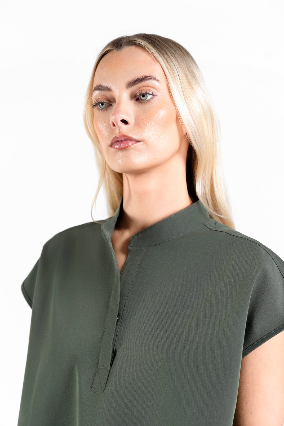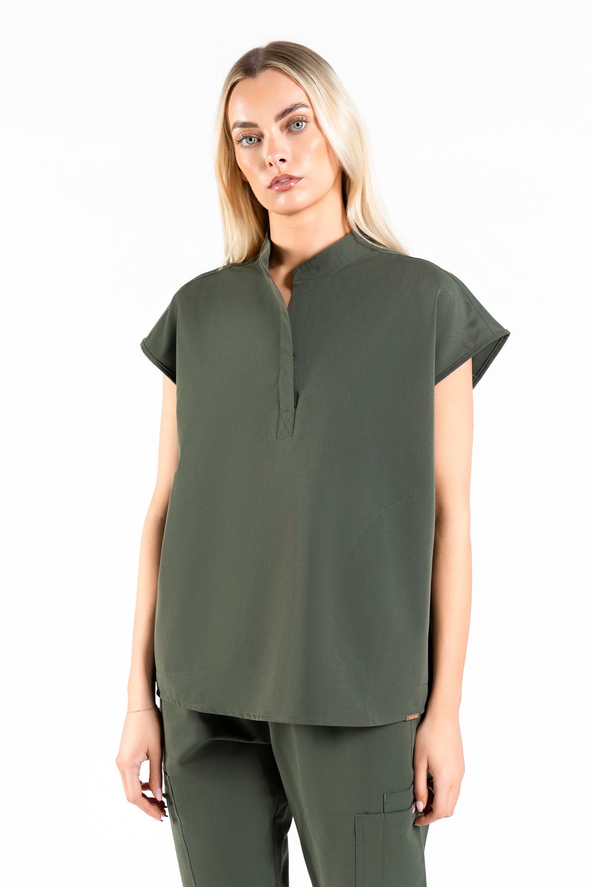 Lowercase Title: mandarin womens collar scrub top