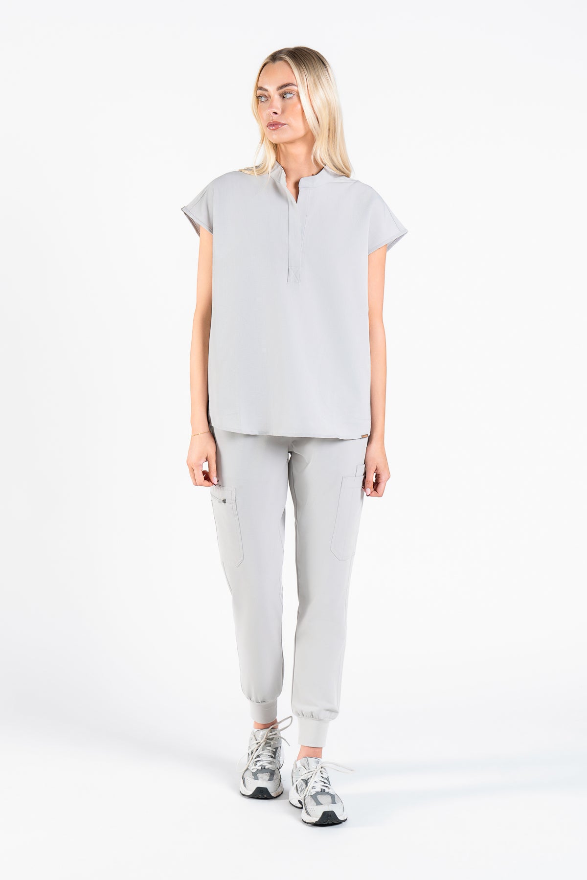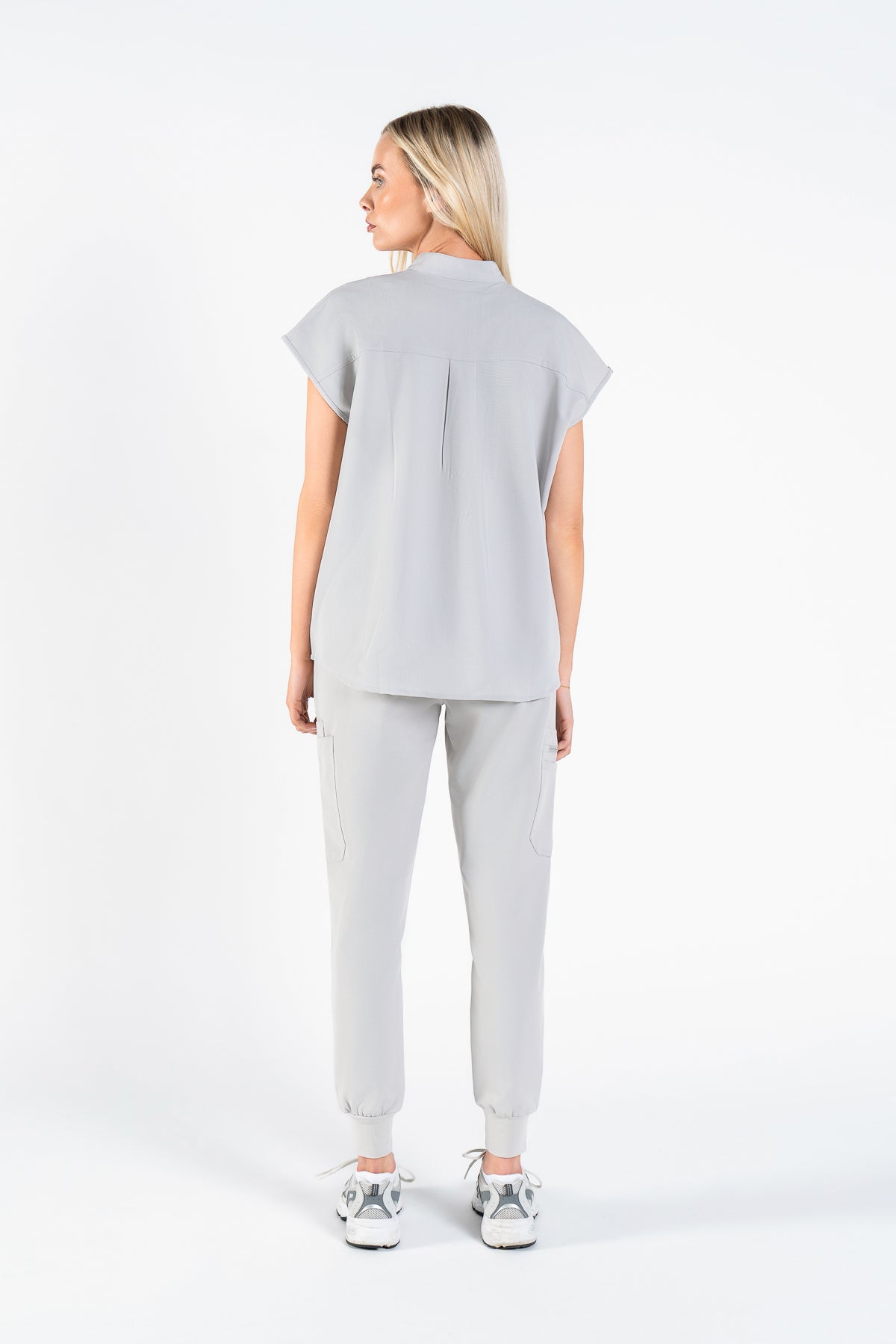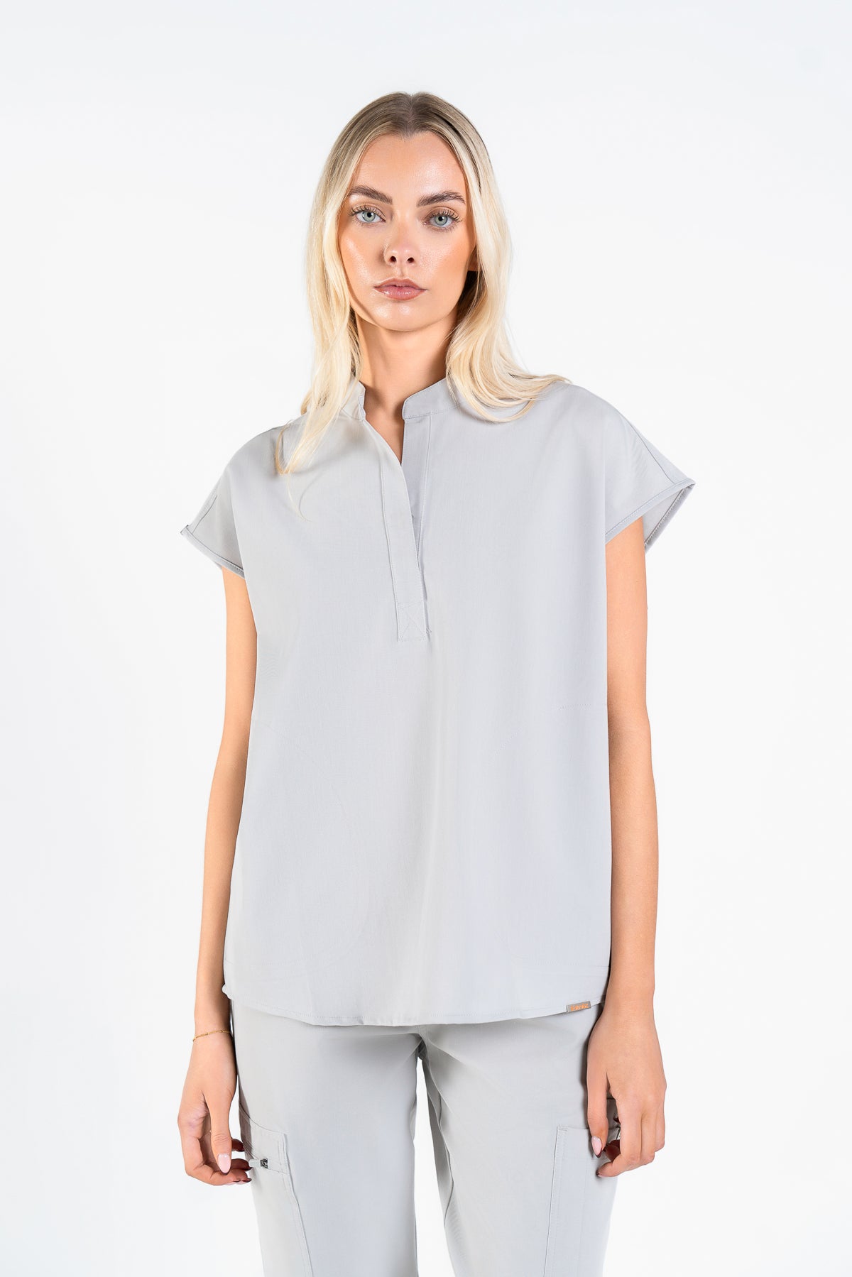 As an endocrinologist, I need scrubs that allow movement while looking professional. These in Quiet Grey are perfect! The collar adds a lovely touch, and they fit like a dream.