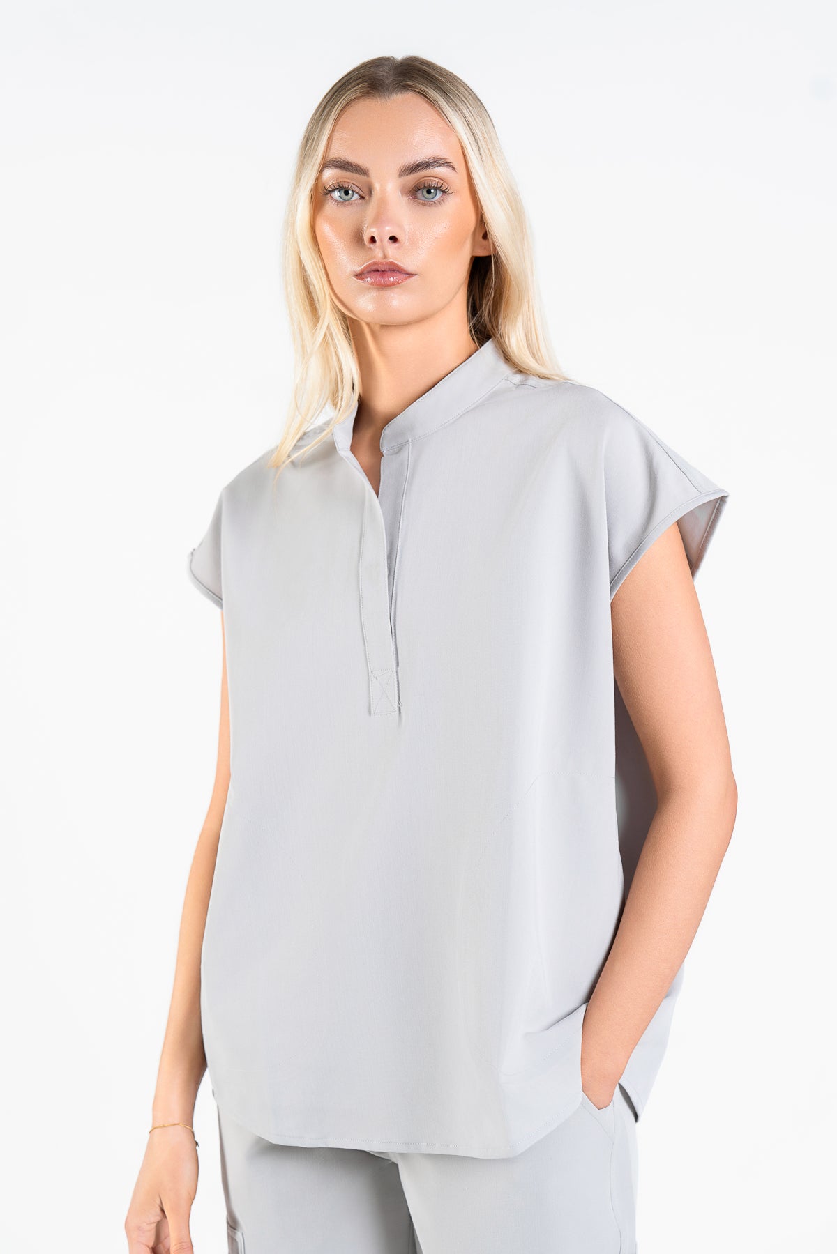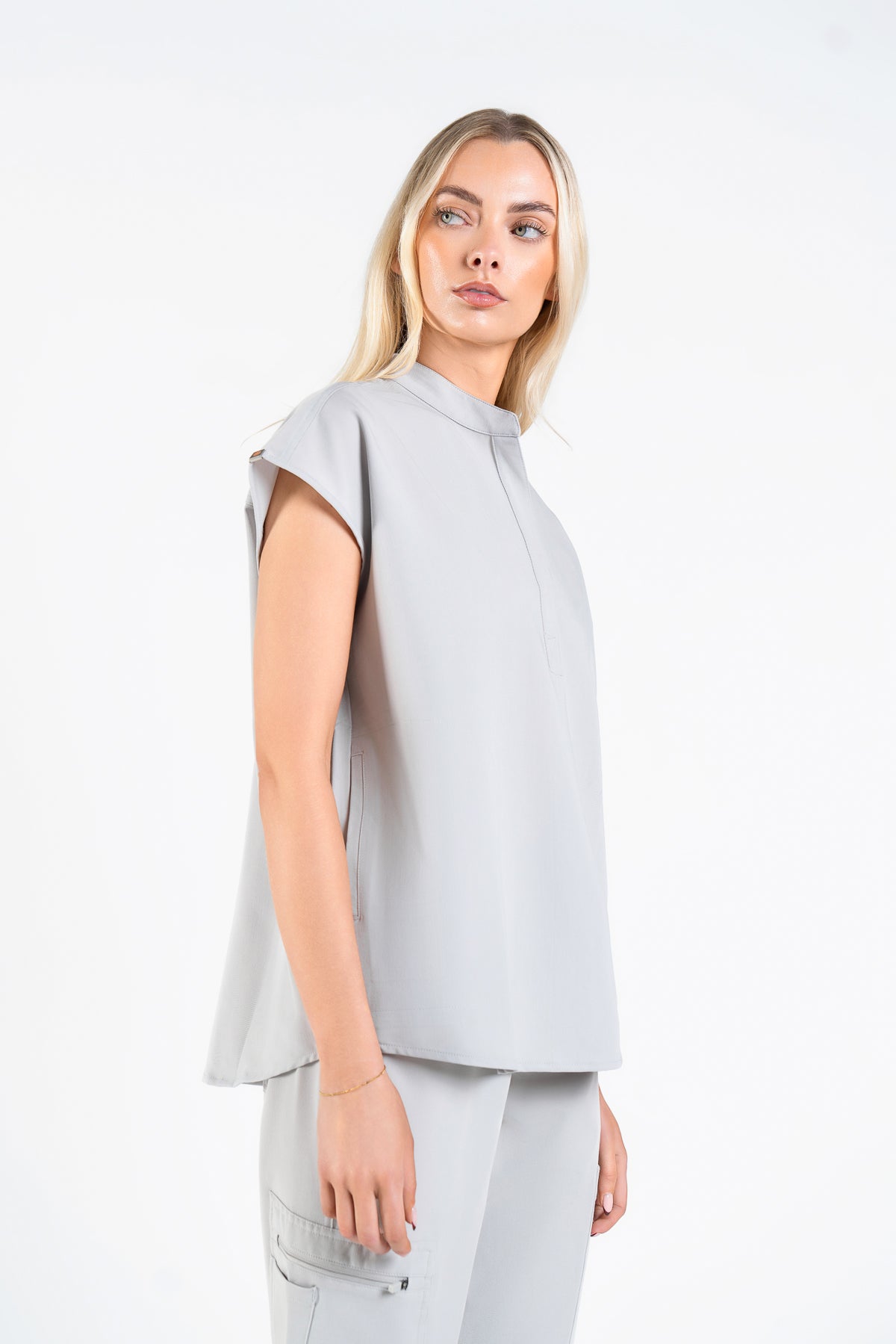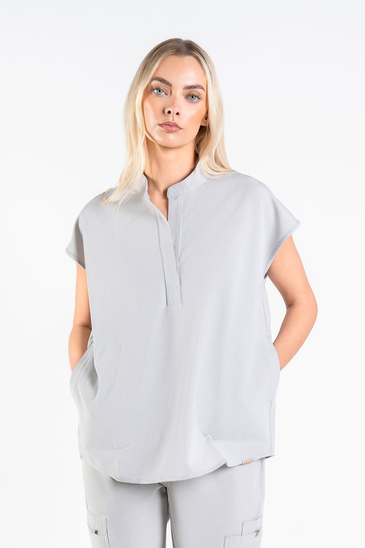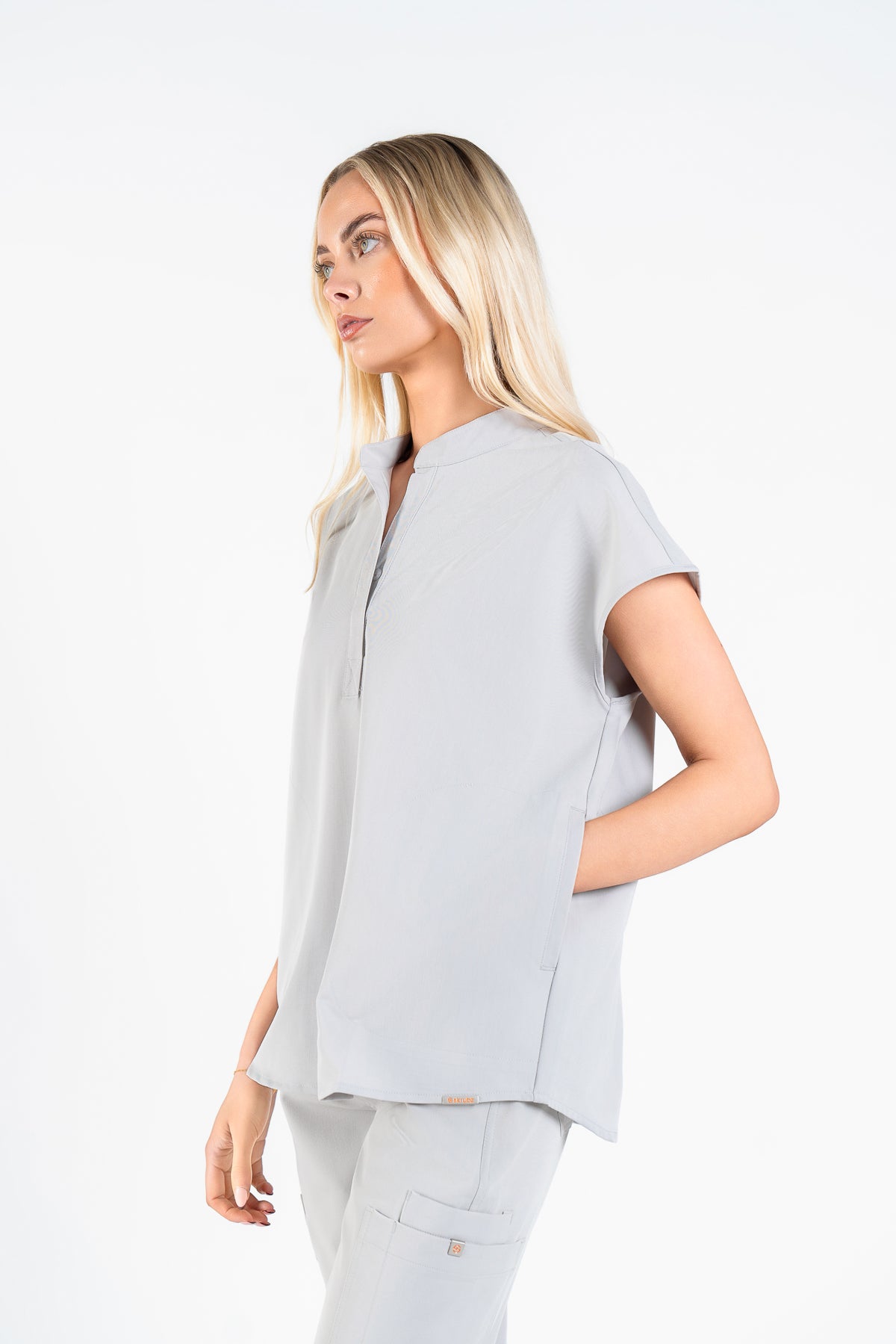 As an endocrinologist, I need scrubs that allow movement while looking professional. These in Quiet Grey are perfect! The collar adds a lovely touch, and they fit like a dream.