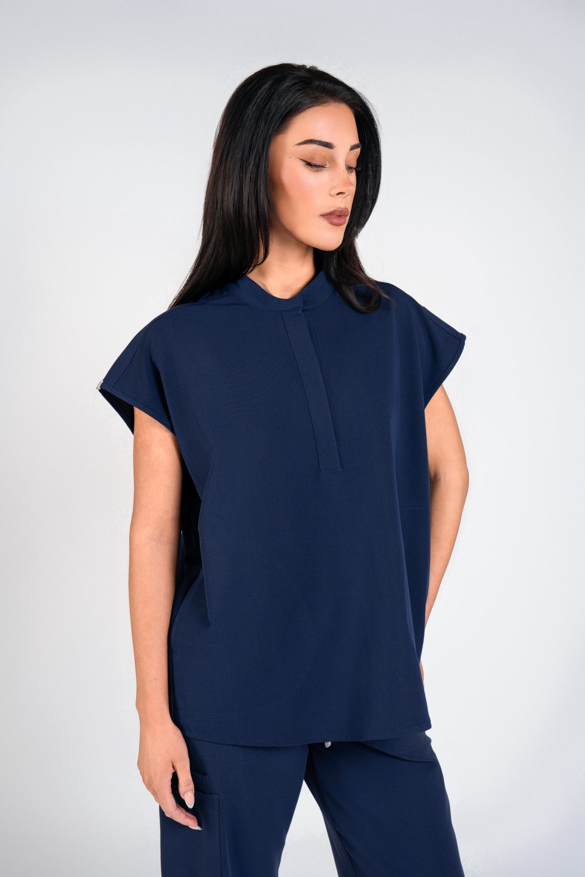 Elevate your professional attire with our Mandarin Medical Top, a perfect blend of style, comfort, and functionality. Crafted from a cutting-edge blend of 21% Rayon, 7% Spandex, and 72% Polyester, this top redefines what medical apparel can be.