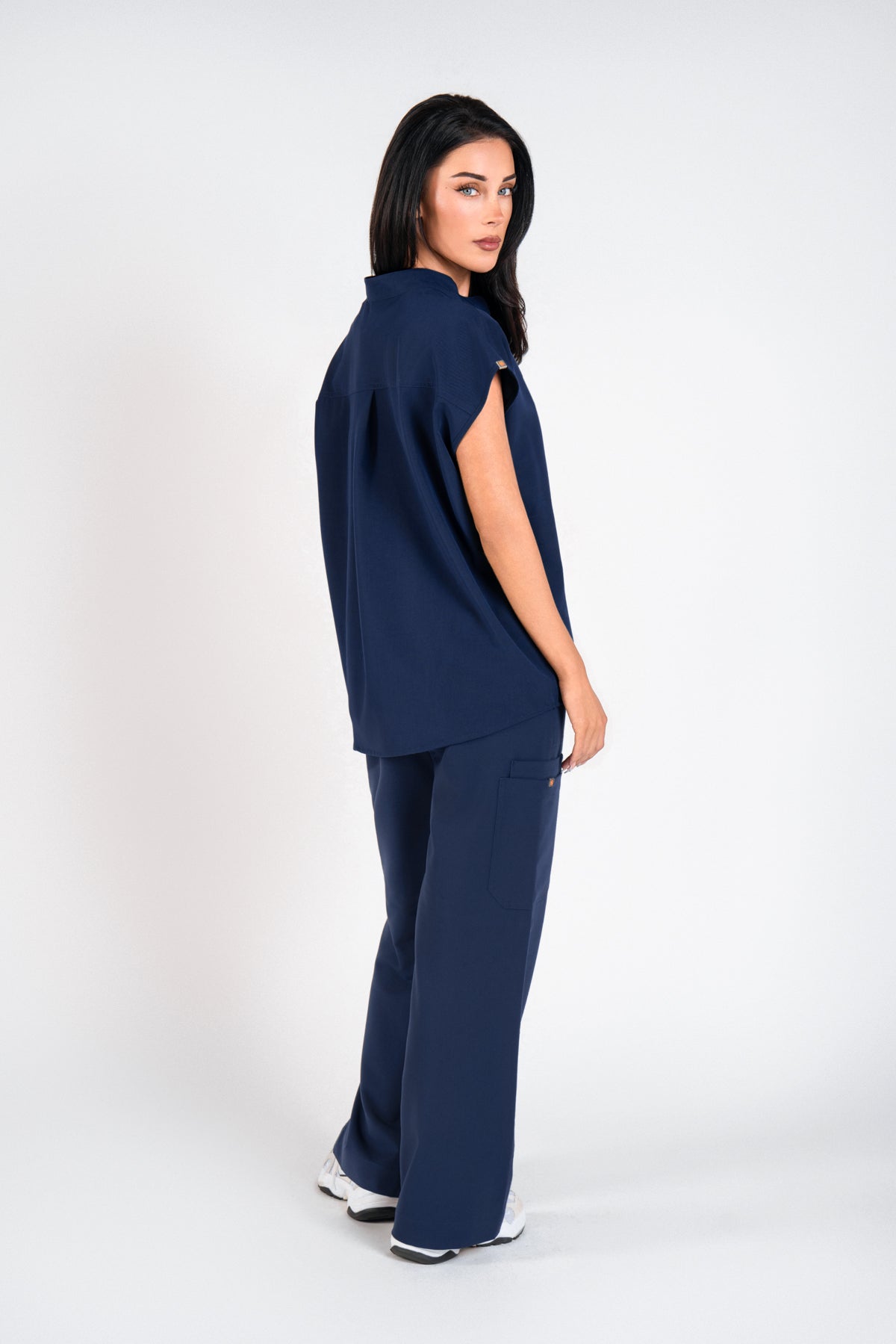 The embroidery adds such a classy touch and with the anti-wrinkle fabric, I’m always clinic-ready in seconds